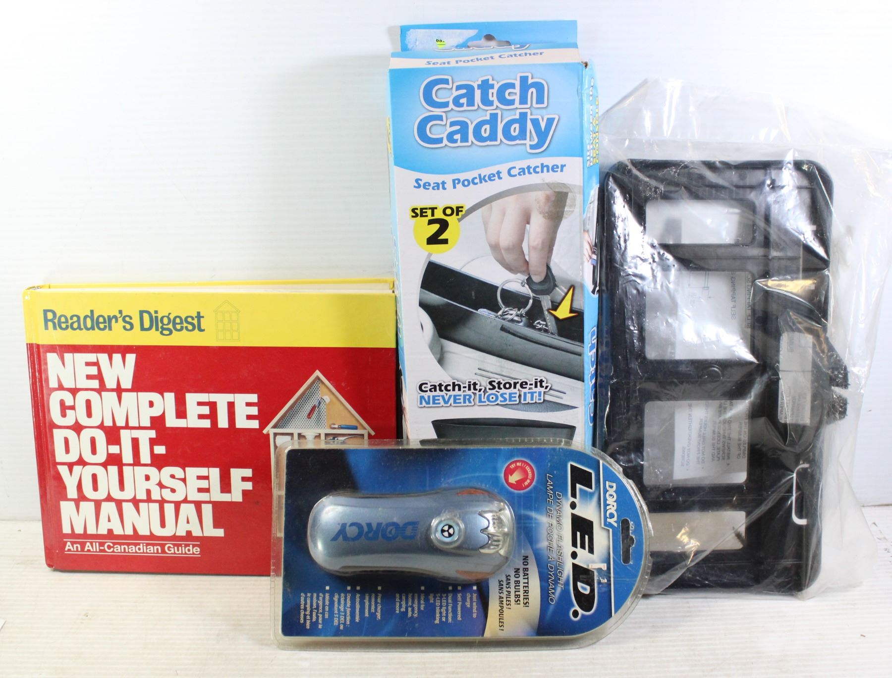 DORCY LED FLASHLIGHT, 2 NEW CAR CATCH CADDS, LICENCE PLATE BRACKET