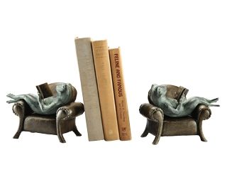 READING FROG BOOKENDS - 5.5"H 7.5"W 4"D - ALUMINUM