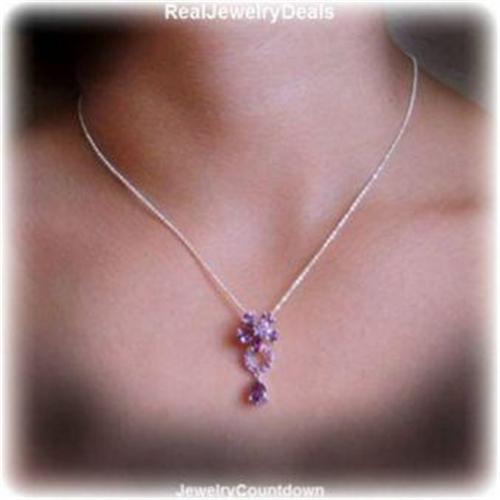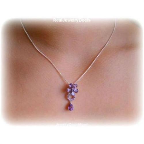 Solid Sterling Silver Genuine Amethyst Necklace 18" Necklace