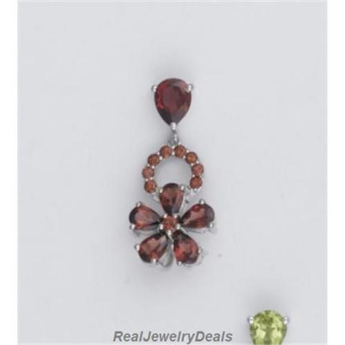 Solid Sterling Silver Genuine Garnet BIG FLOWER Necklace