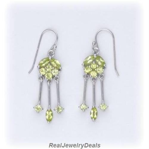 Solid Sterling Silver Genuine Peridot Dangle Earrings
