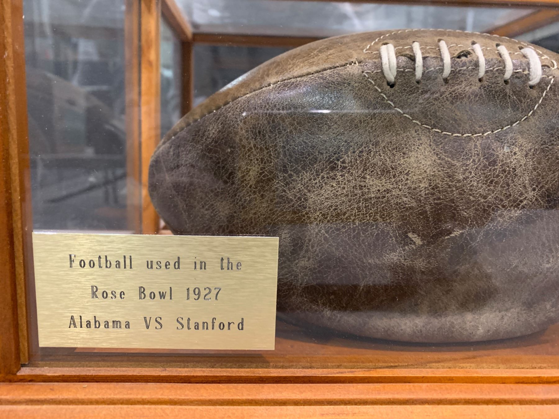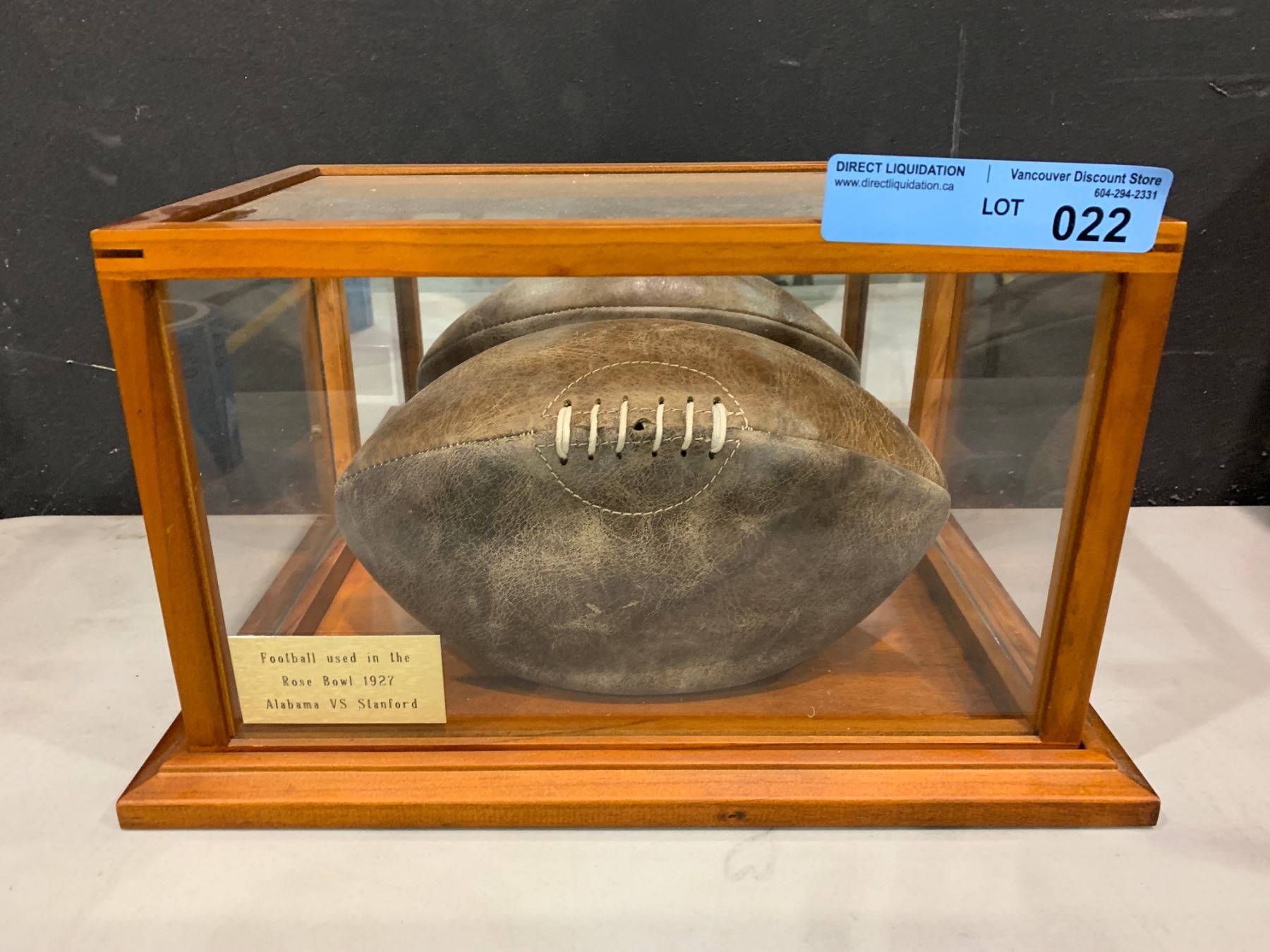 REAL VINTAGE FOOTBALL IN GLASS DISPLAY CASE
