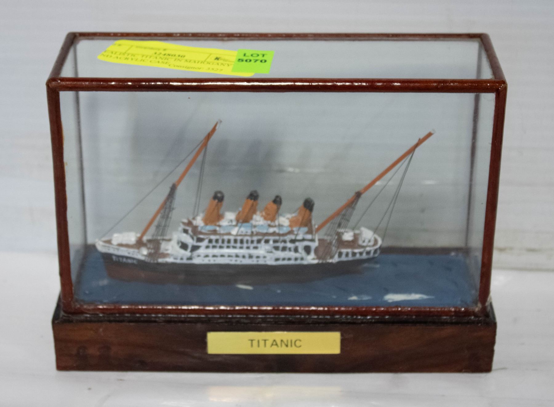 REALISTIC TITANIC IN MAHOGANY AND ACRYLIC CASE
