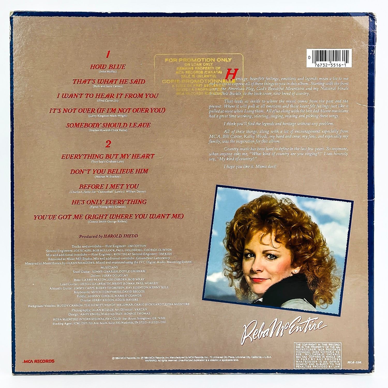 #8729 - PROMOTIONAL VINYL LP RECORD ALBUM, FOLK, WORLD & COUNTRY, COUNTRY. MCA RECORDS MCA-5516