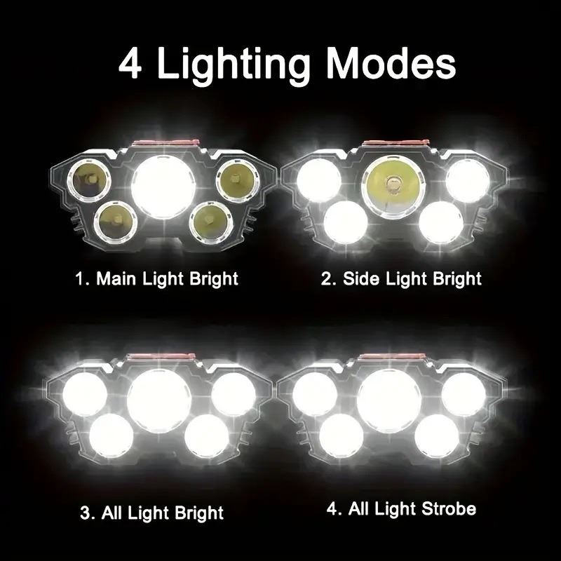 RECHARGEABLE 5 LED HEADLAMP: 4 MODES, WATERPROOF