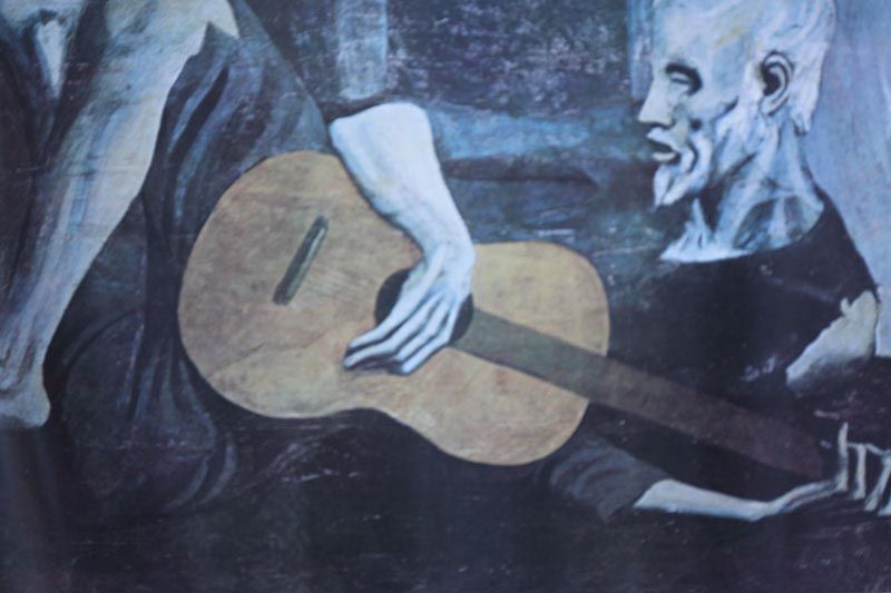 RECOGNIZED PAINTER PABLO PICASSO **|**|** 24X36 INCHES; UNFRAMED; This poster is of Old Guitarist, by Pablo Picasso. It shows an old barefoot man sitting with a guitar in his lap. He is leaning to the side as he plays. Pablo Ruiz Picasso (October 25, 1881 - April 8, 1973) was a Spanish painter and sculptor. One of the most recognized figures in 20th century art, he is best known as the co-founder, along with Georges Braque, of cubism. Picasso\\\'s work is often categorized into periods : the Blue Period, the Rose Period the African-influenced Period, Analytic Cubism, and Synthetic Cubism. If you have any questions regarding this artwork, please feel free to contact us we will be more than happy to assist you. ; MSRP: $1500