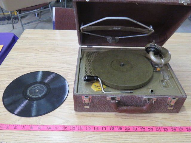 RECORD PLAYER (VINTAGE) *RCA, IN CASE* ( INCLUDES RECORD)
