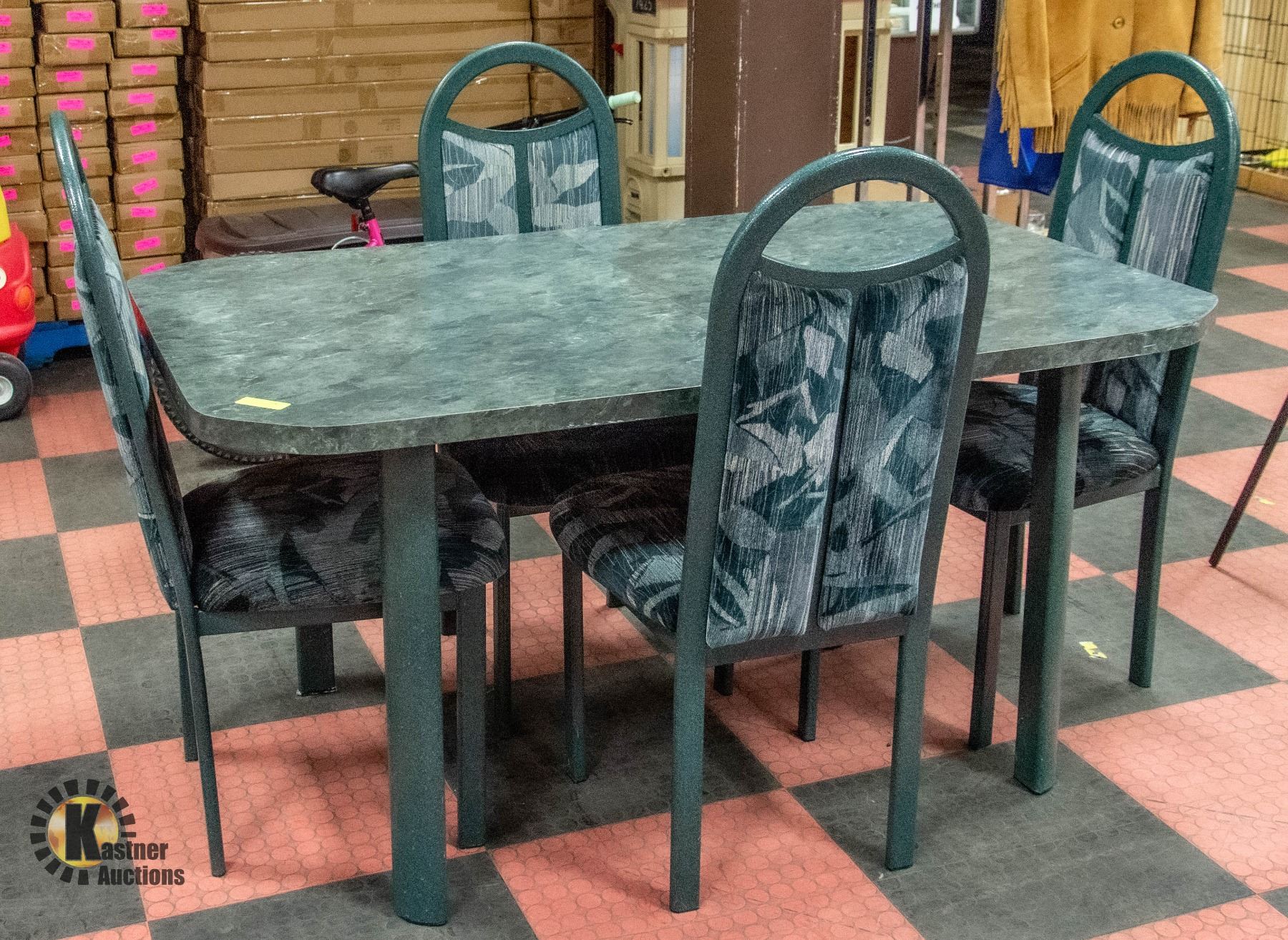 TABLE WITH 4 HIGHBACK CHAIRS WITH PADDED SEATS & BACKS (60"L X 36"W X 30"H) **ALL ITEMS MUST BE REMOVED BY 5PM SATURDAY, JUNE 17TH 2023. ALL REMAINING ITEMS WILL BE SUBJECT TO A $6.00 PER DAY STORAGE CHARGE. ANY ITEMS REMAINING AFTER MONDAY, JULY 3RD, 2023 WILL BE CONSIDERED FORFEITED. NO REFUNDS WILL BE ISSUED FOR FORFEITED ITEMS. TO SCHEDULE A PICK UP APPOINTMENT CLICK HERE