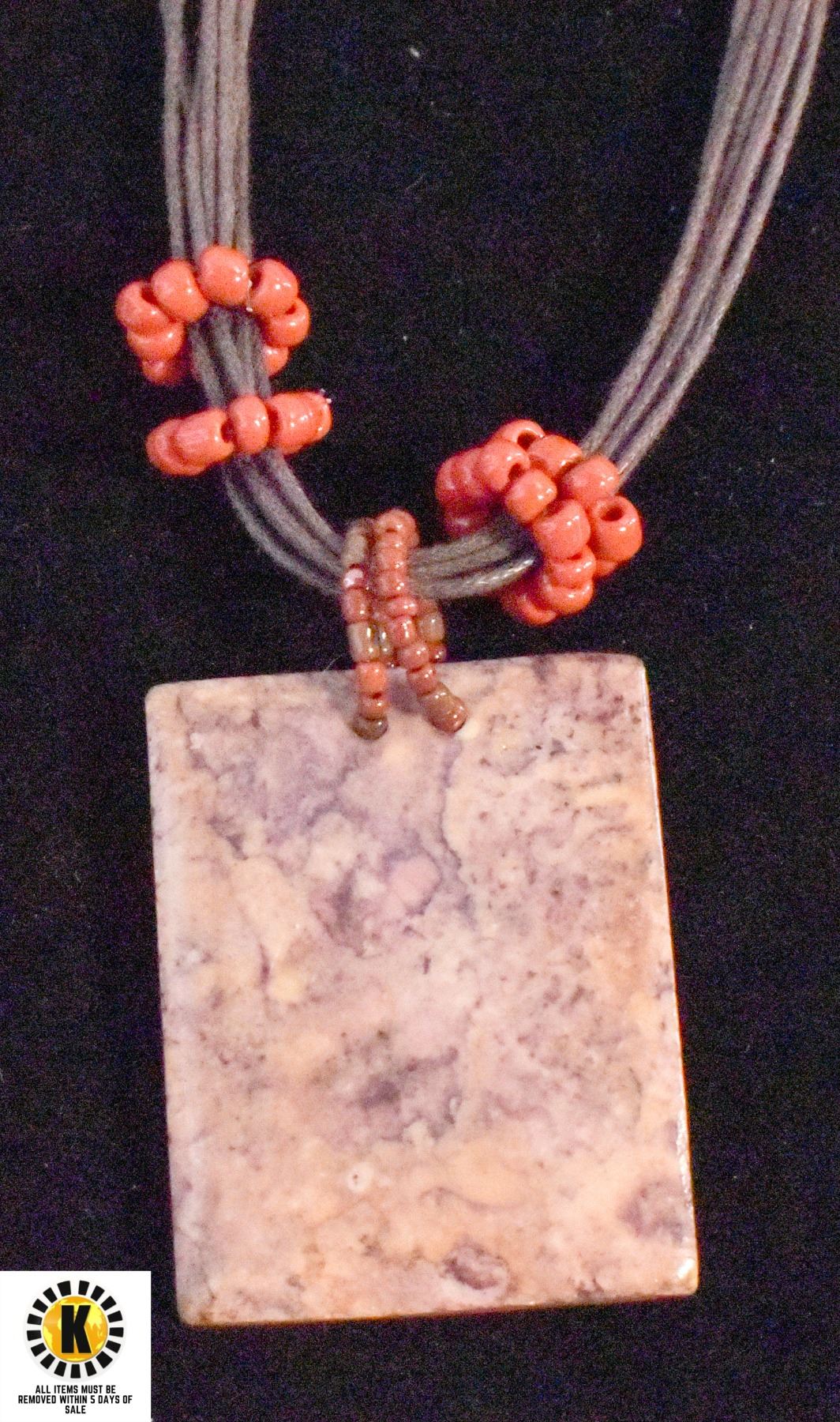 PENDANT ON 7 STRAND JUTE NECKLACE WITH BEAD ACCENTS. JEWELLERY