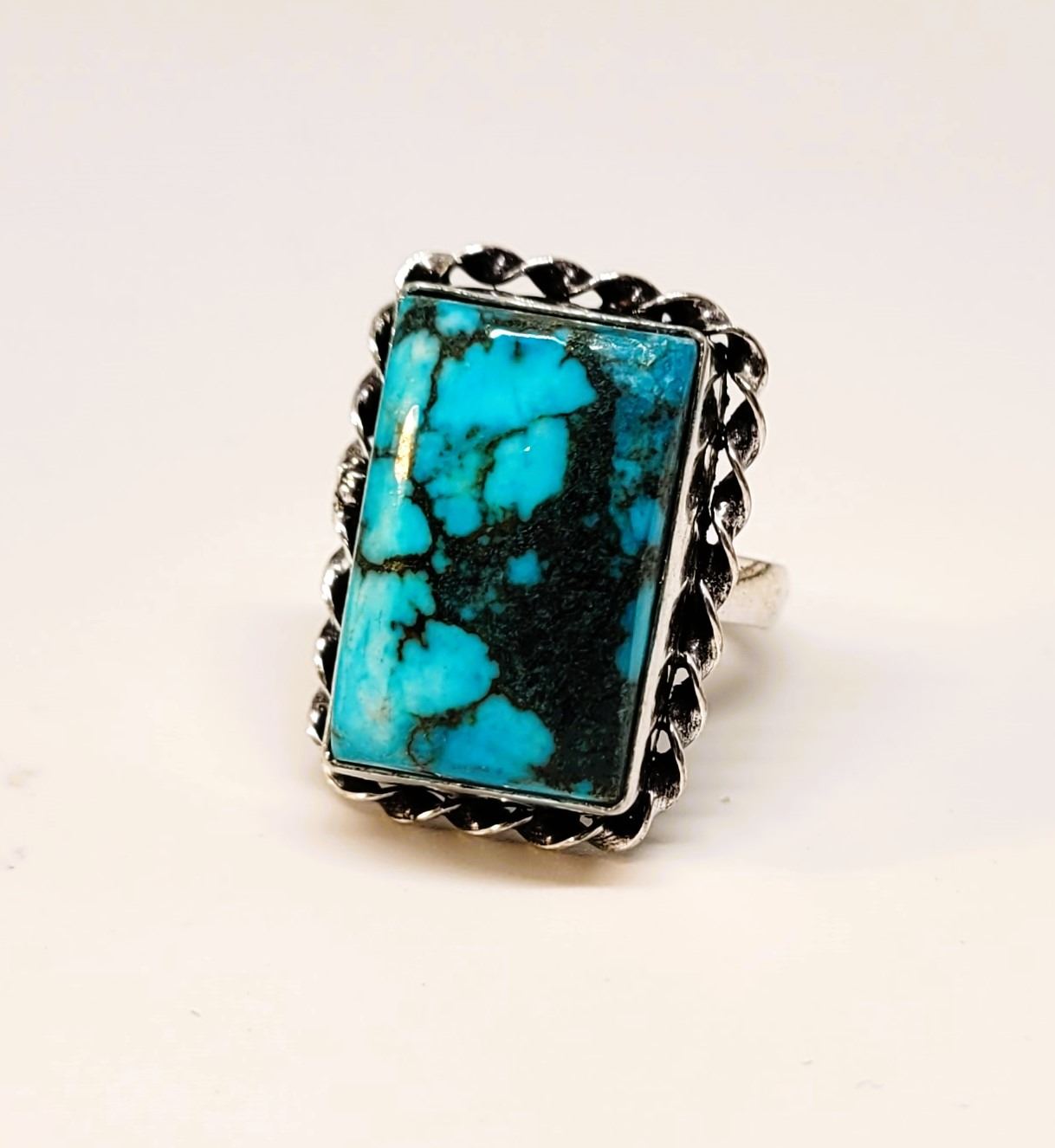 RECTANGULAR CUT NATURAL TURQUOISE RING,
