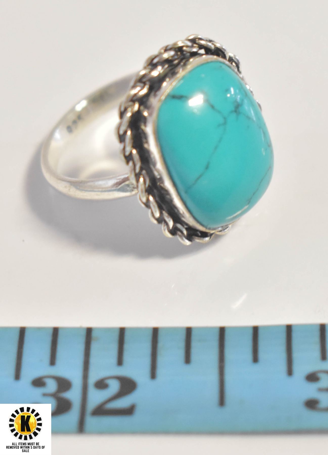 SIZE 8 RING STAMPED 925 WITH TWISTED ROPE SETTING. JEWELLERY