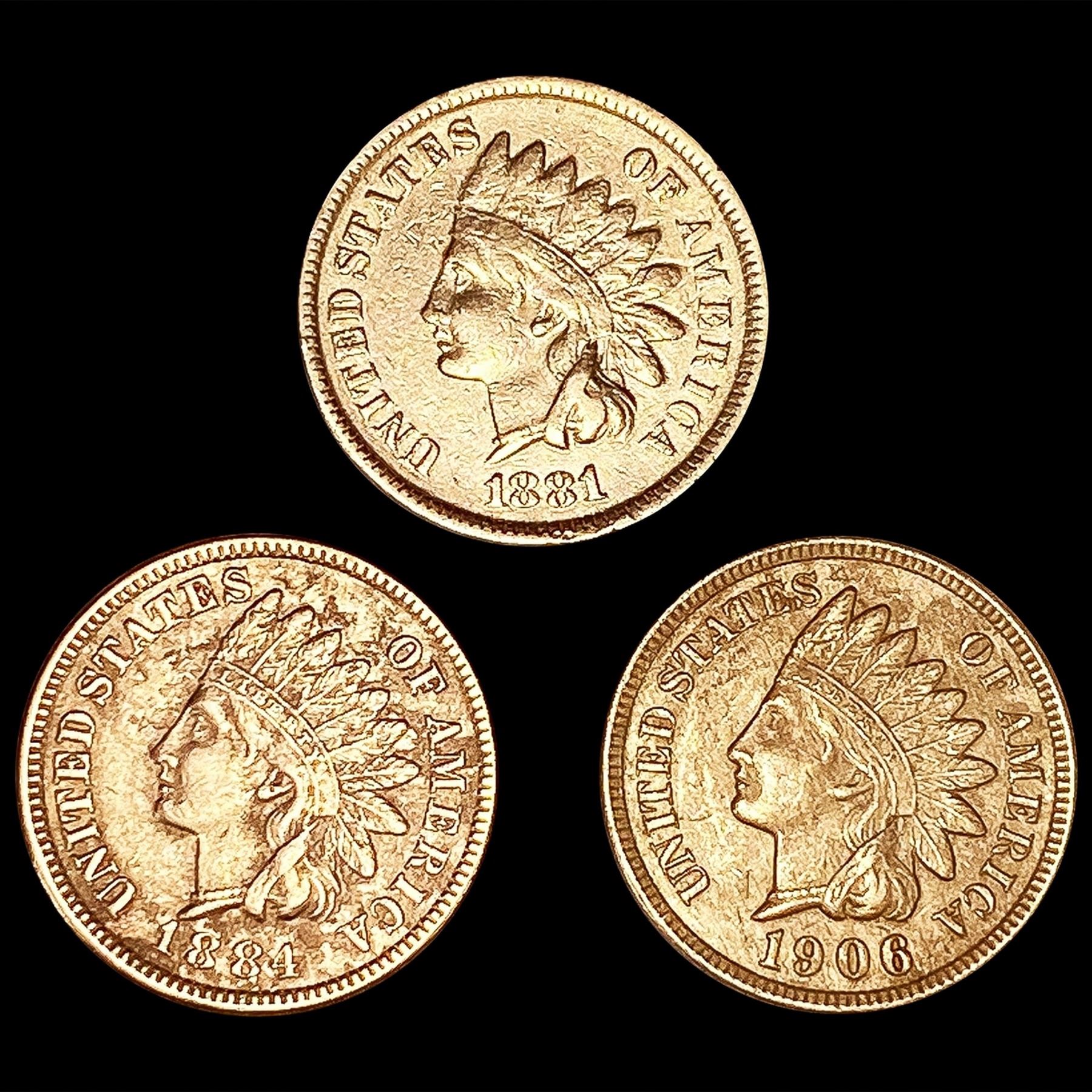RED (3) Indian Head Cents (1881, 1884, 1906) UNC