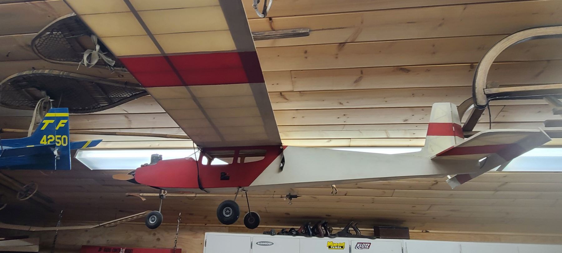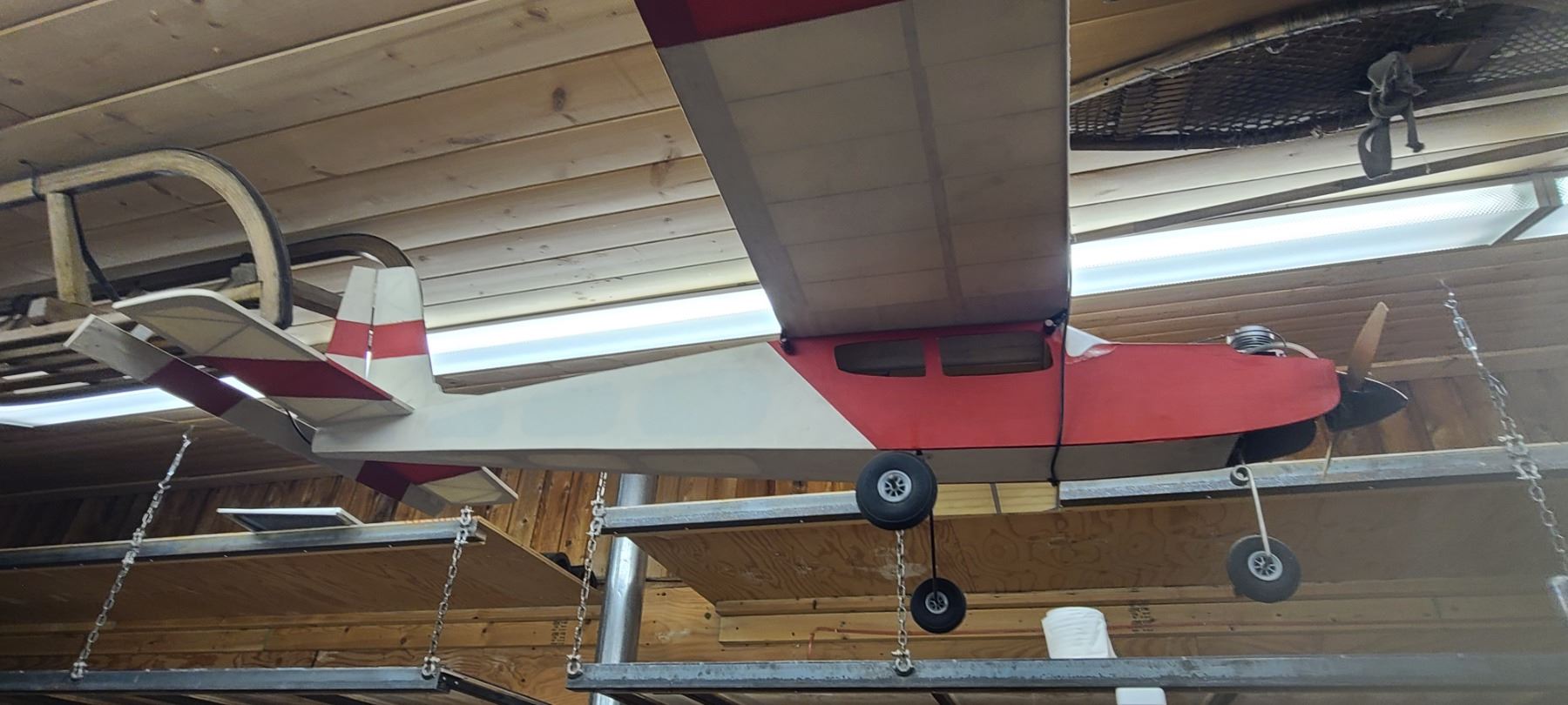 RED AND WHITE R.C. AIRPLANE - NO REMOTE OR STARTER SIZE" APPROX 62" X 48"