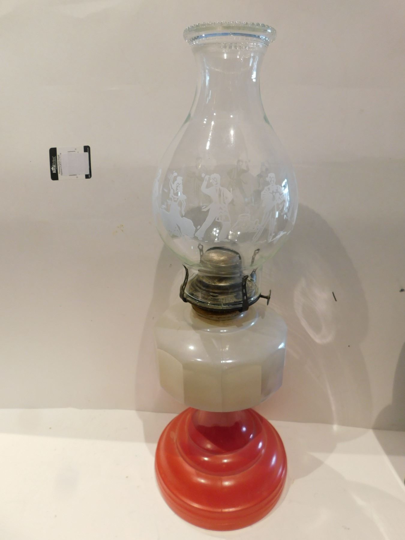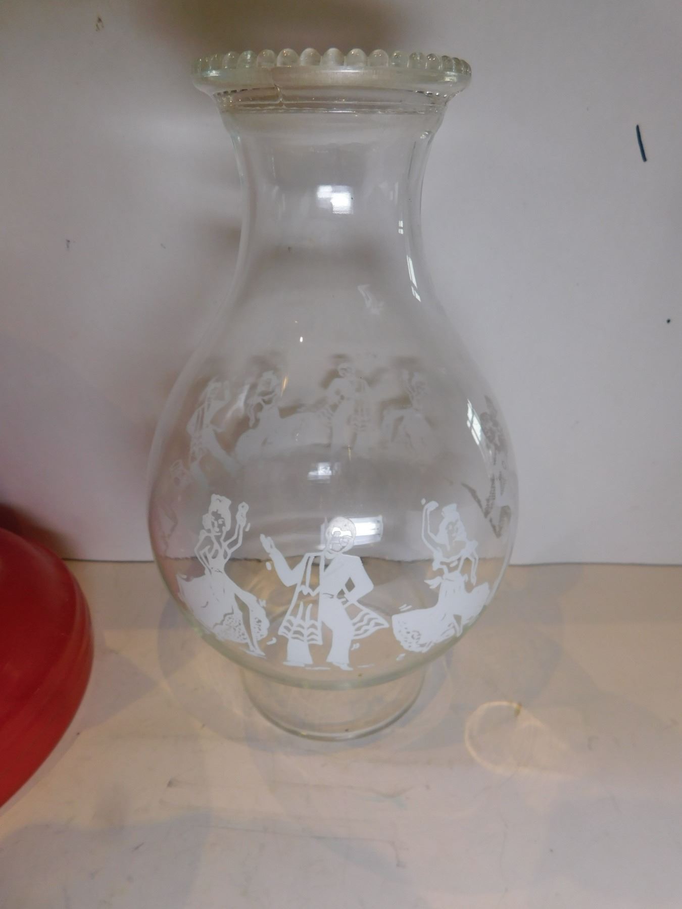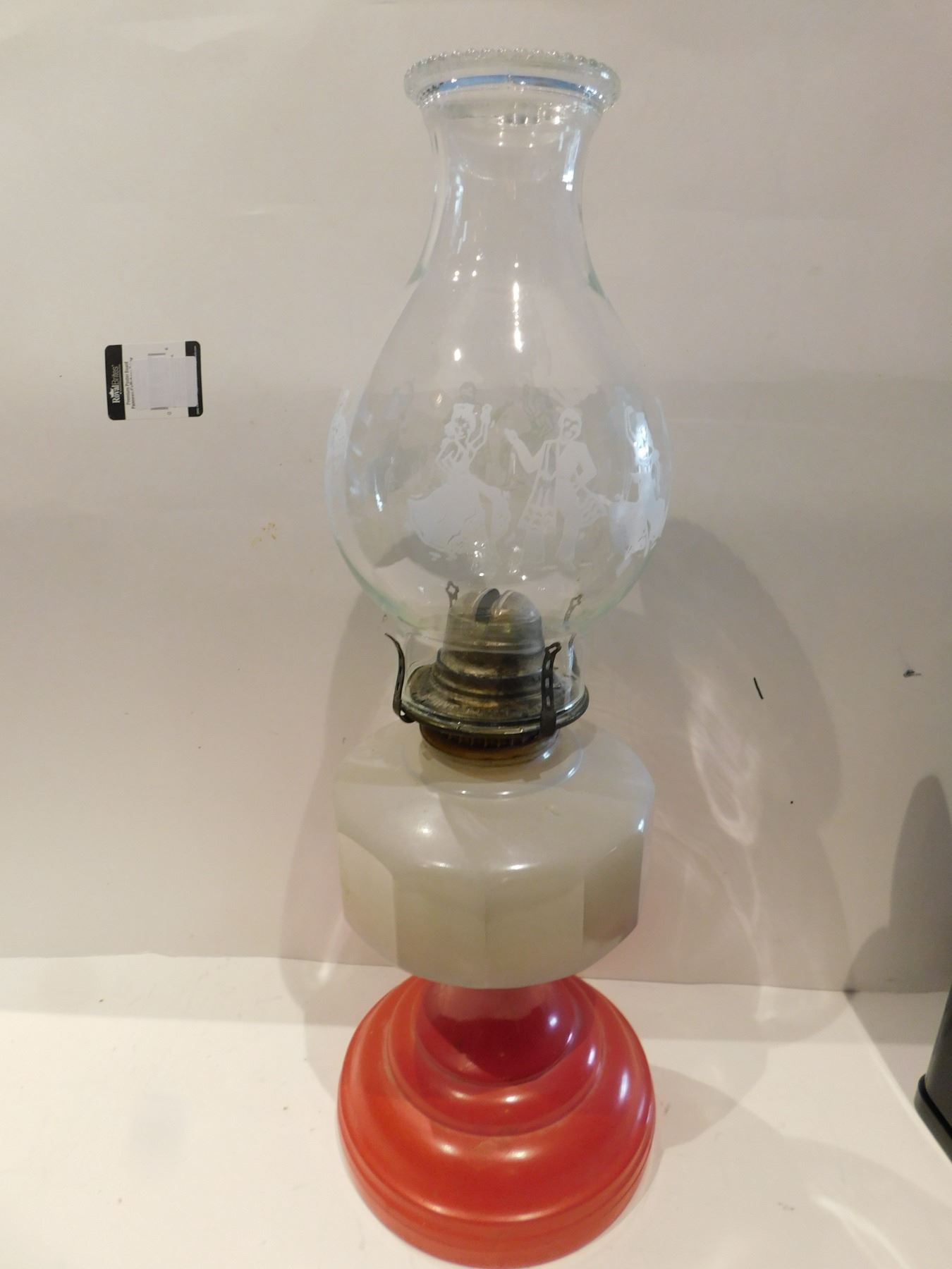 RED BASED ANTIQUE LANTERN AND CHIMNEY