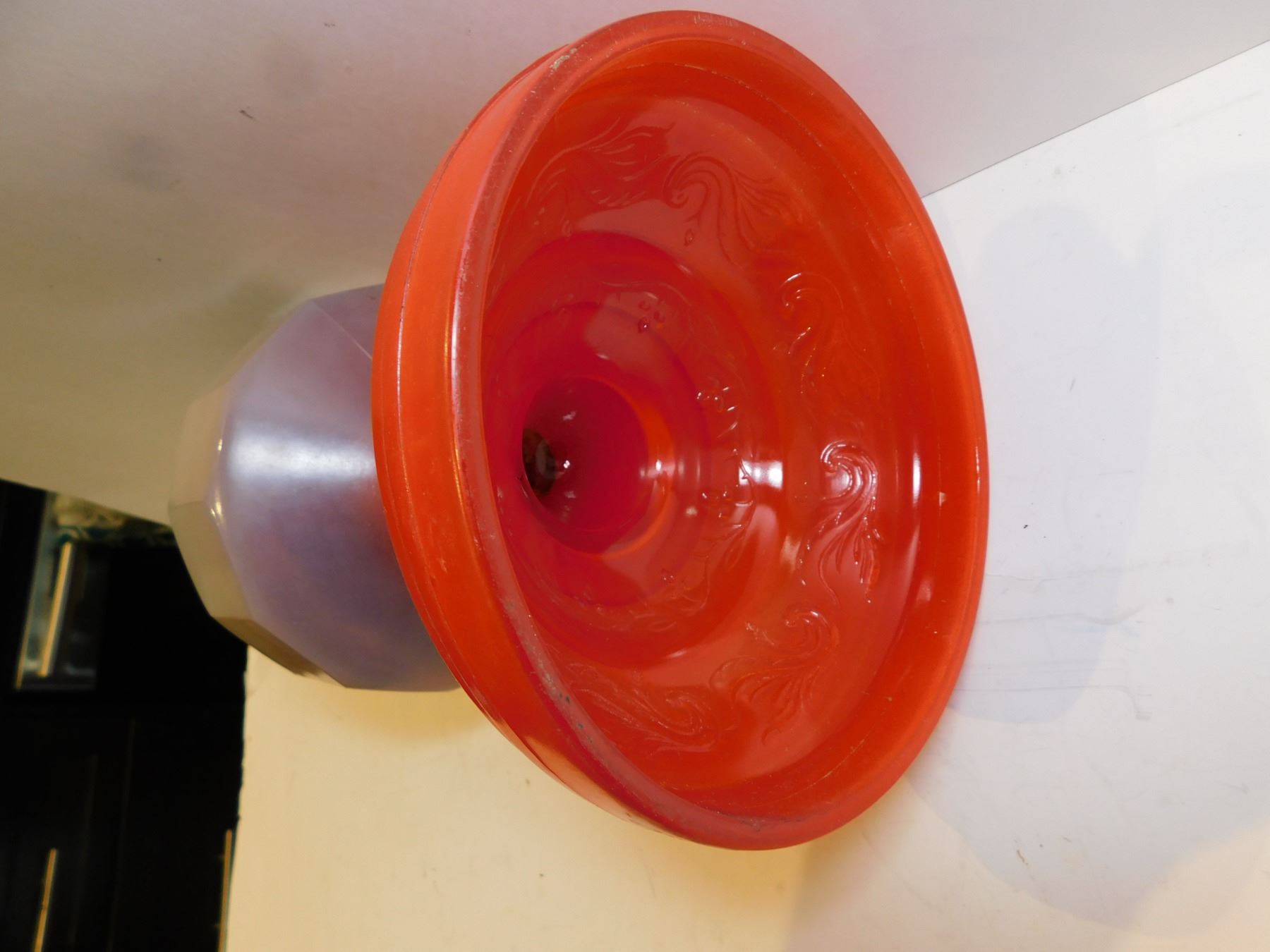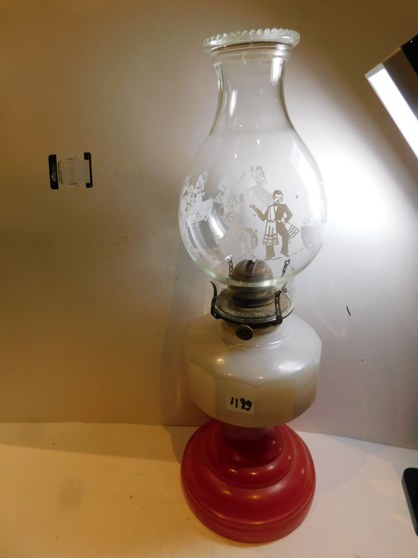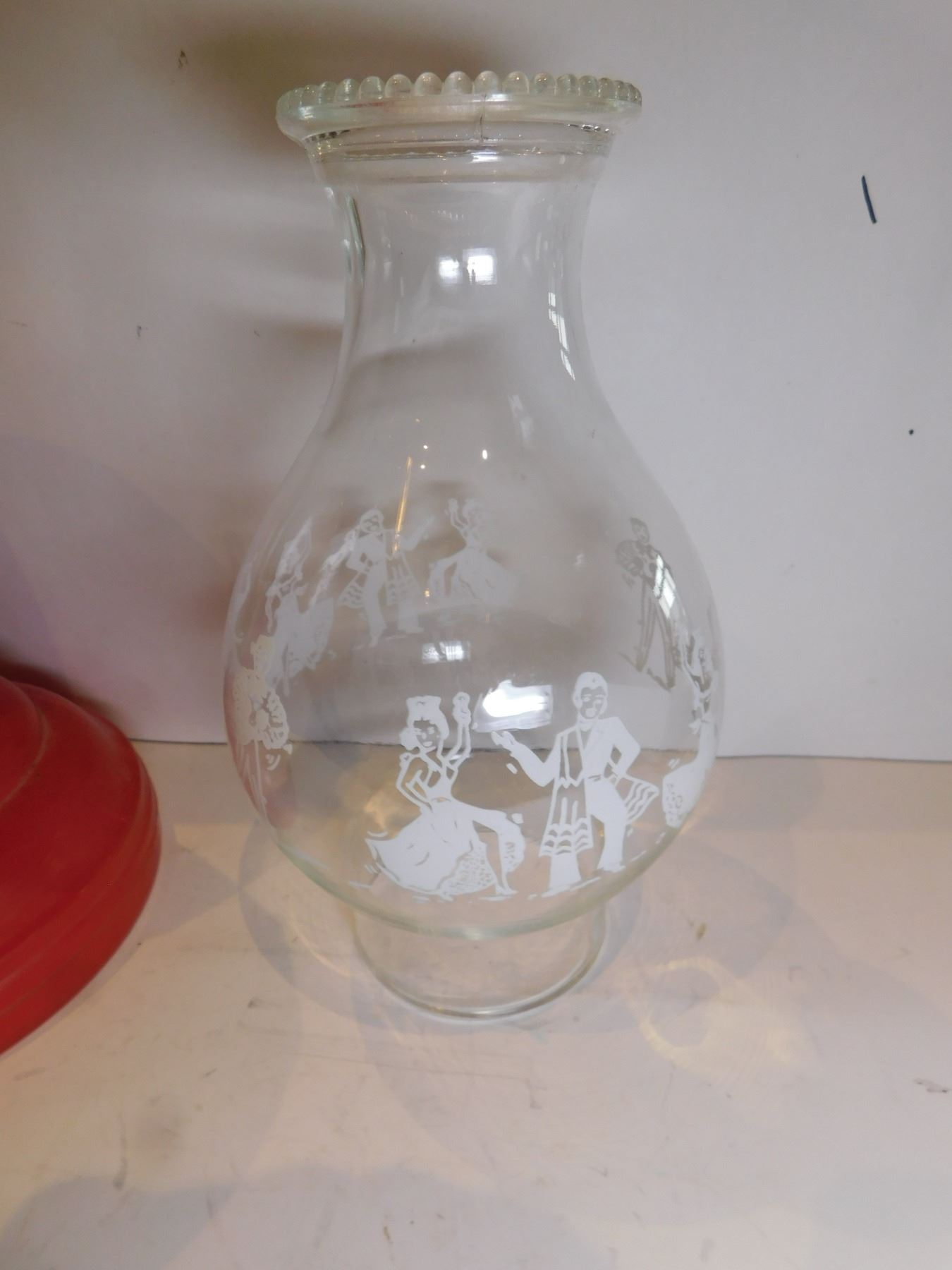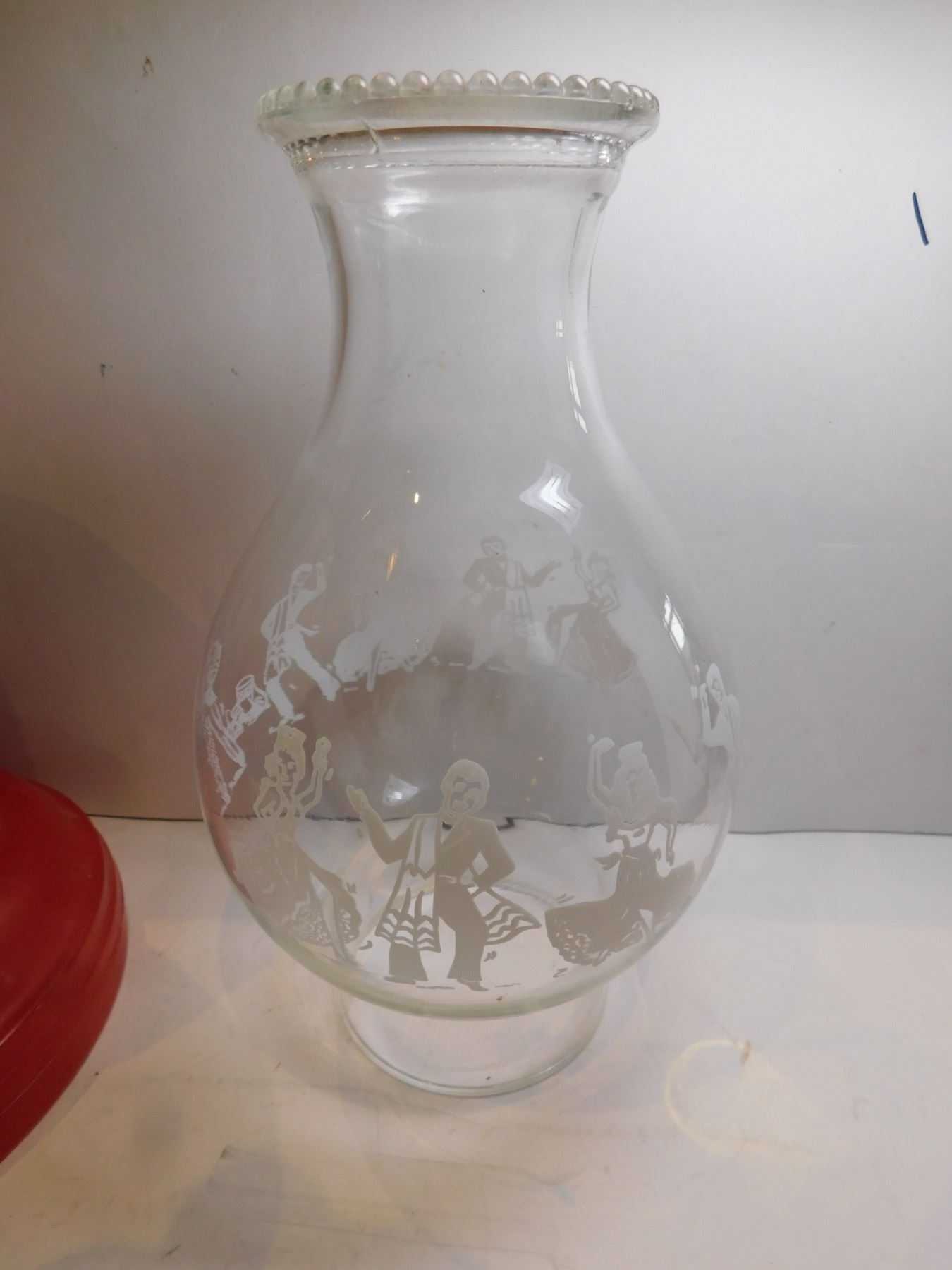 RED BASED ANTIQUE LANTERN AND CHIMNEY