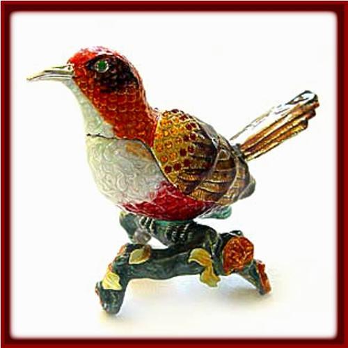 RED BIRD JEWELRY BOX SWAROVSKI CRYSTALS 24K GOLD