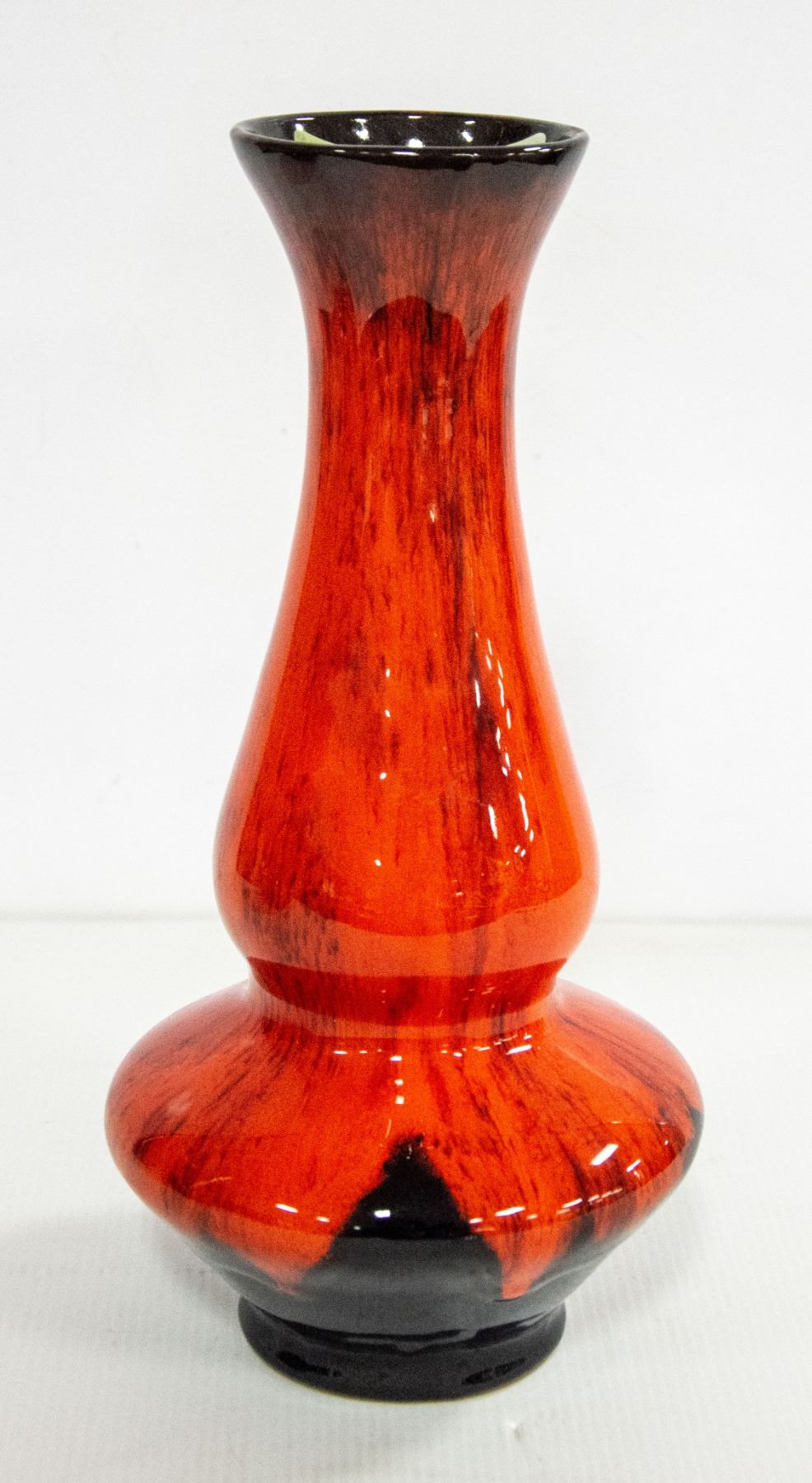 RED/BLACK VASE APPROX 14" TALL MADE IN QUEBEC