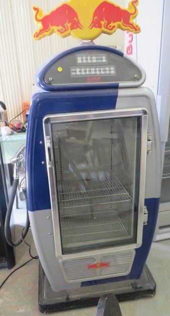 RED BULL GAS PUMP COOLER (64.5" TALL X 26.5 LONG X 18.5 WIDE) * AS IS*