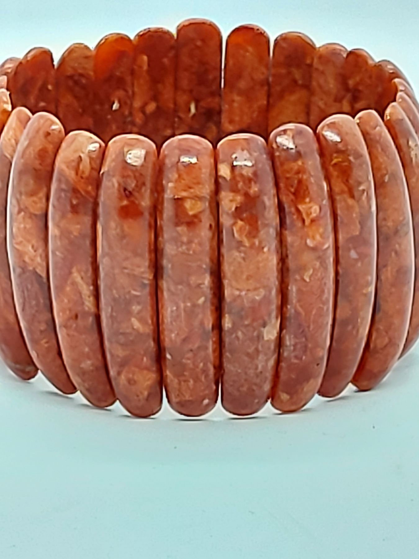 Natural Red Coral Oval Pendant Stretchy Bracelet 7.5 inch 39x7x5mm