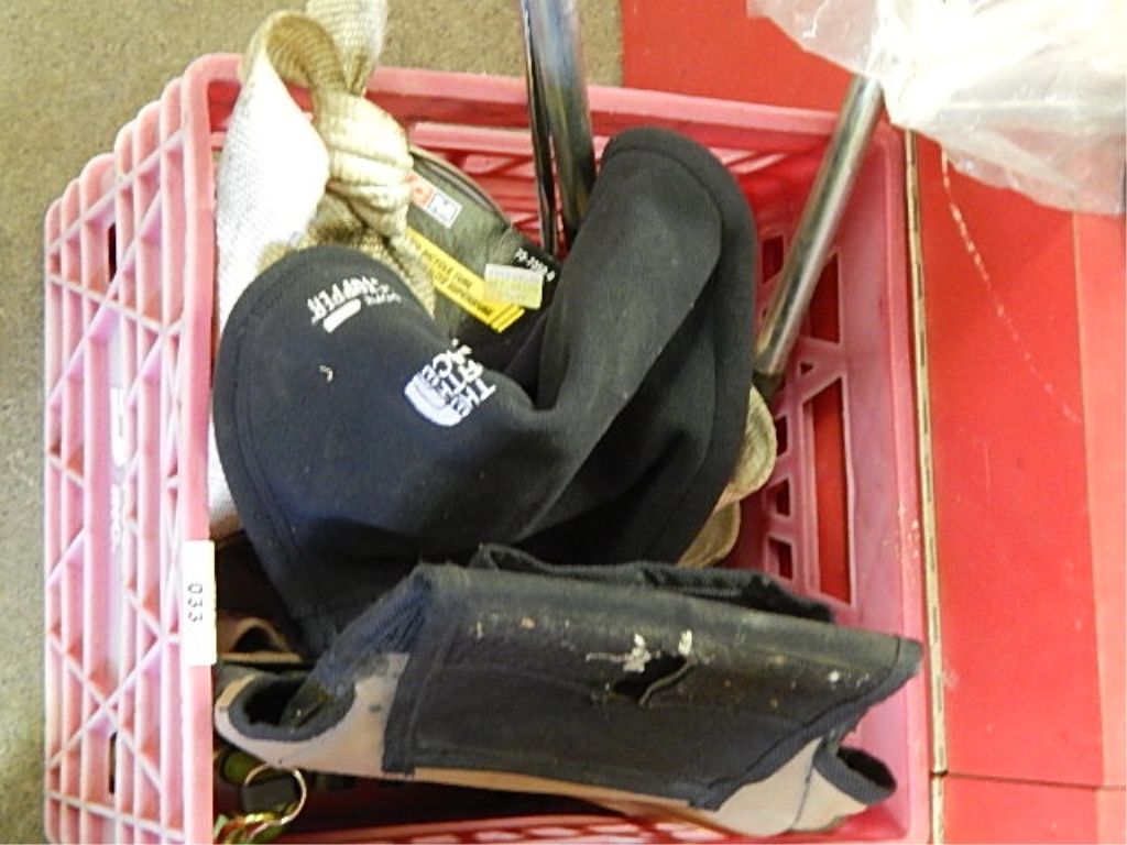 RED CRATE WITH TOOL BELT AND MORE