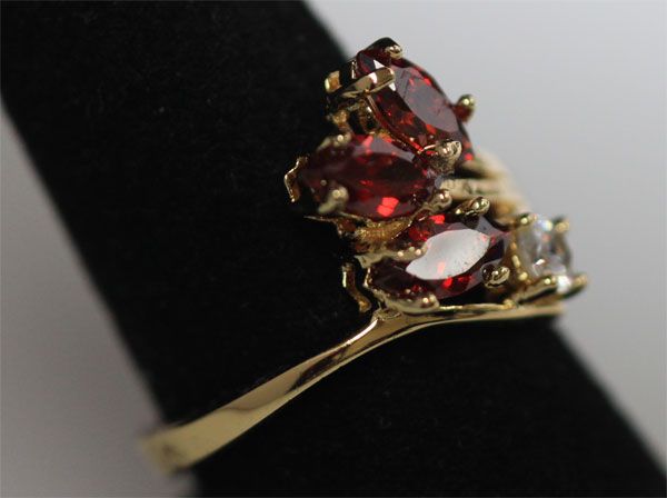 RED CZ AND CZ 14K GOLD PLATED RING **|**|** RED CZ AND CZ 14K GOLD PLATED RING ; METAL BRASS; BRAZILIAN JEWELRY; 14K GOLD PLATED ; MSRP: $0