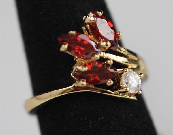 RED CZ AND CZ 14K GOLD PLATED RING **|**|** RED CZ AND CZ 14K GOLD PLATED RING ; METAL BRASS; BRAZILIAN JEWELRY; 14K GOLD PLATED ; MSRP: $0