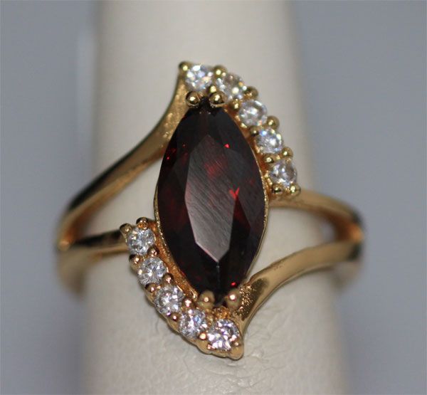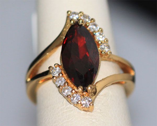 RED CZ AND CZ 14K GOLD PLATED RING **|**|** RED CZ AND CZ 14K GOLD PLATED RING ; METAL BRASS; BRAZILIAN JEWELRY; 14K GOLD PLATED ; MSRP: $0