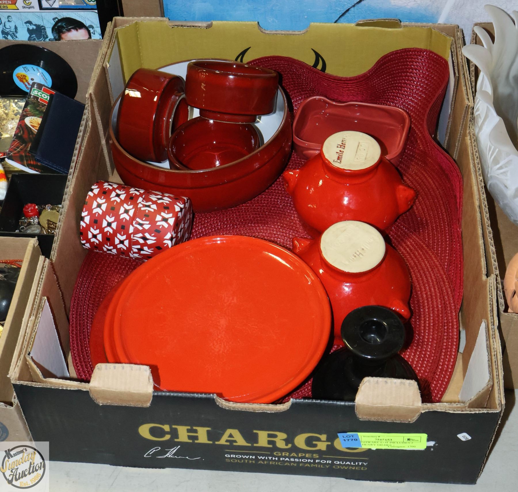 LARGE ROUND RED PLACE MATS **ALL PROCEEDS FROM THIS LOT WILL GO TO -IN THE WOODS ANIMAL RESCUE** **ALL ITEMS MUST BE REMOVED BY 5PM SATURDAY, JUNE 28th 2025. ALL REMAINING ITEMS WILL BE SUBJECT TO A $6.00 PER DAY STORAGE CHARGE. ANY ITEMS REMAINING AFTER MONDAY, JULY 14TH 2025 WILL BE CONSIDERED FORFEITED. NO REFUNDS WILL BE ISSUED FOR FORFEITED ITEMS. TO SCHEDULE A PICK UP APPOINTMENT CLICK HERE