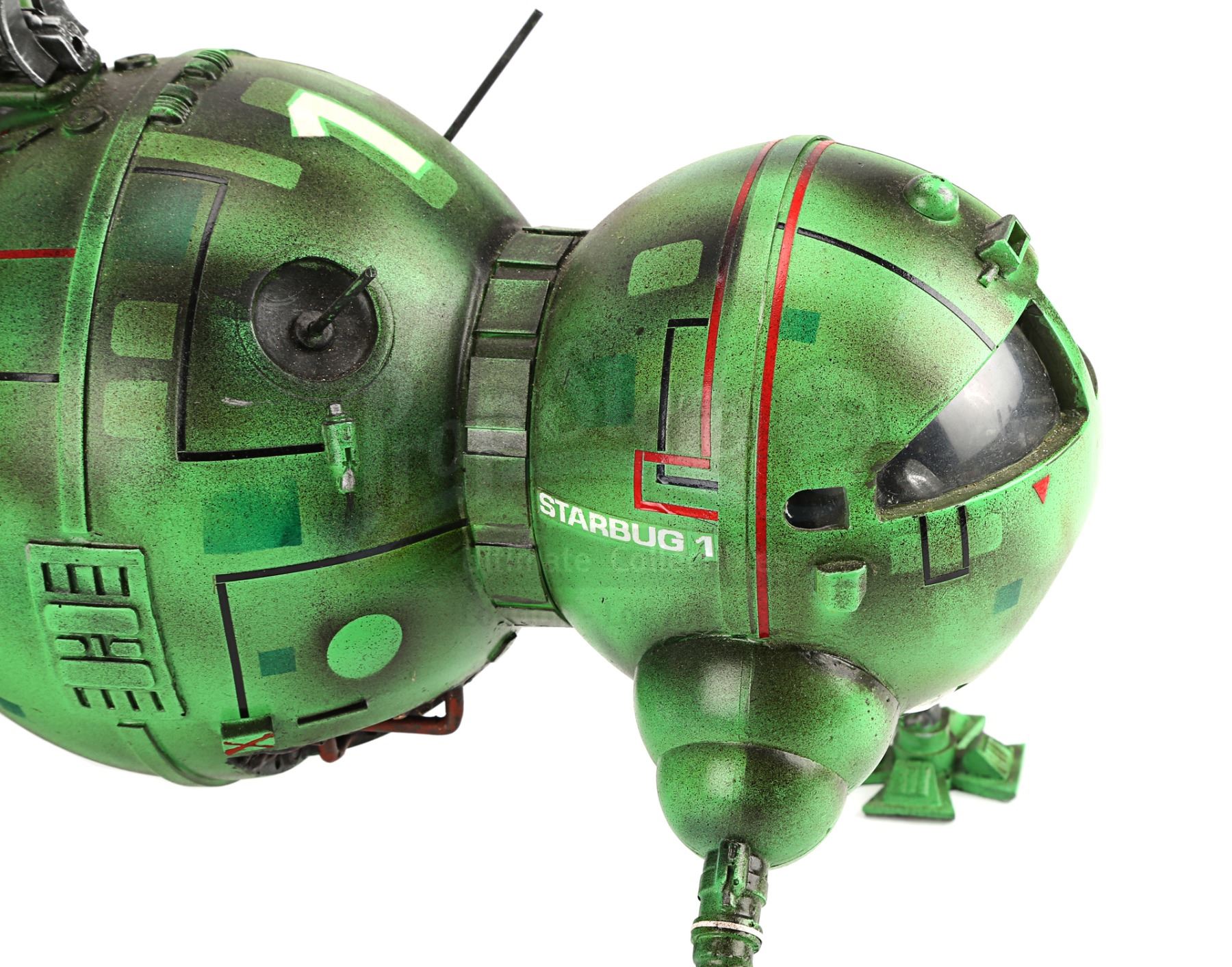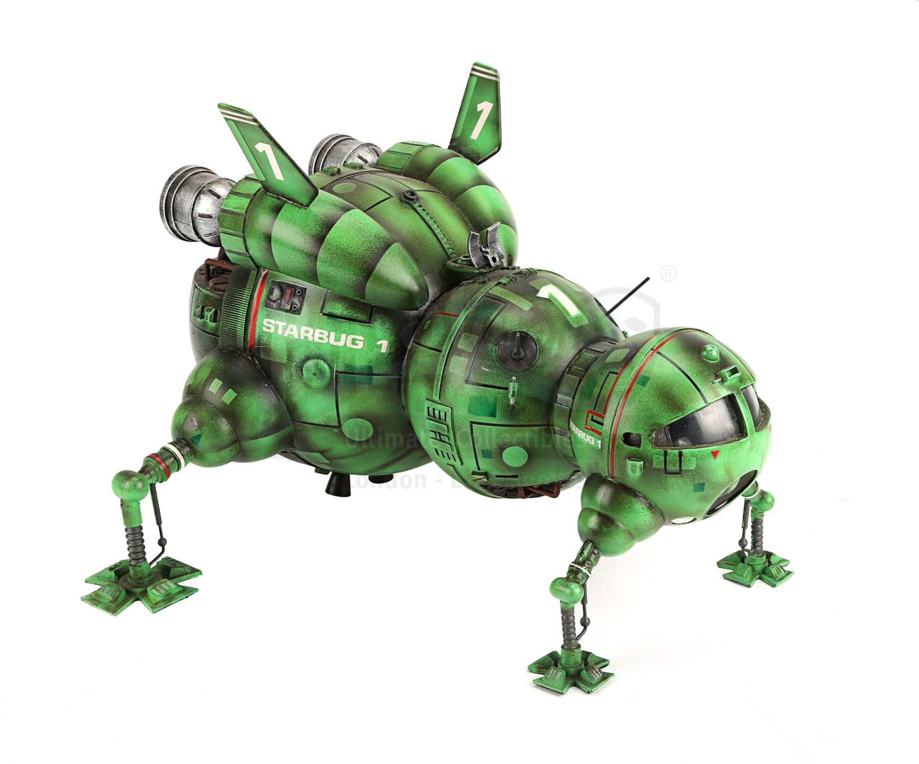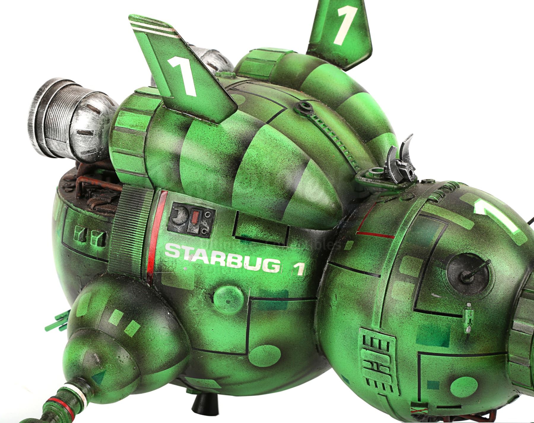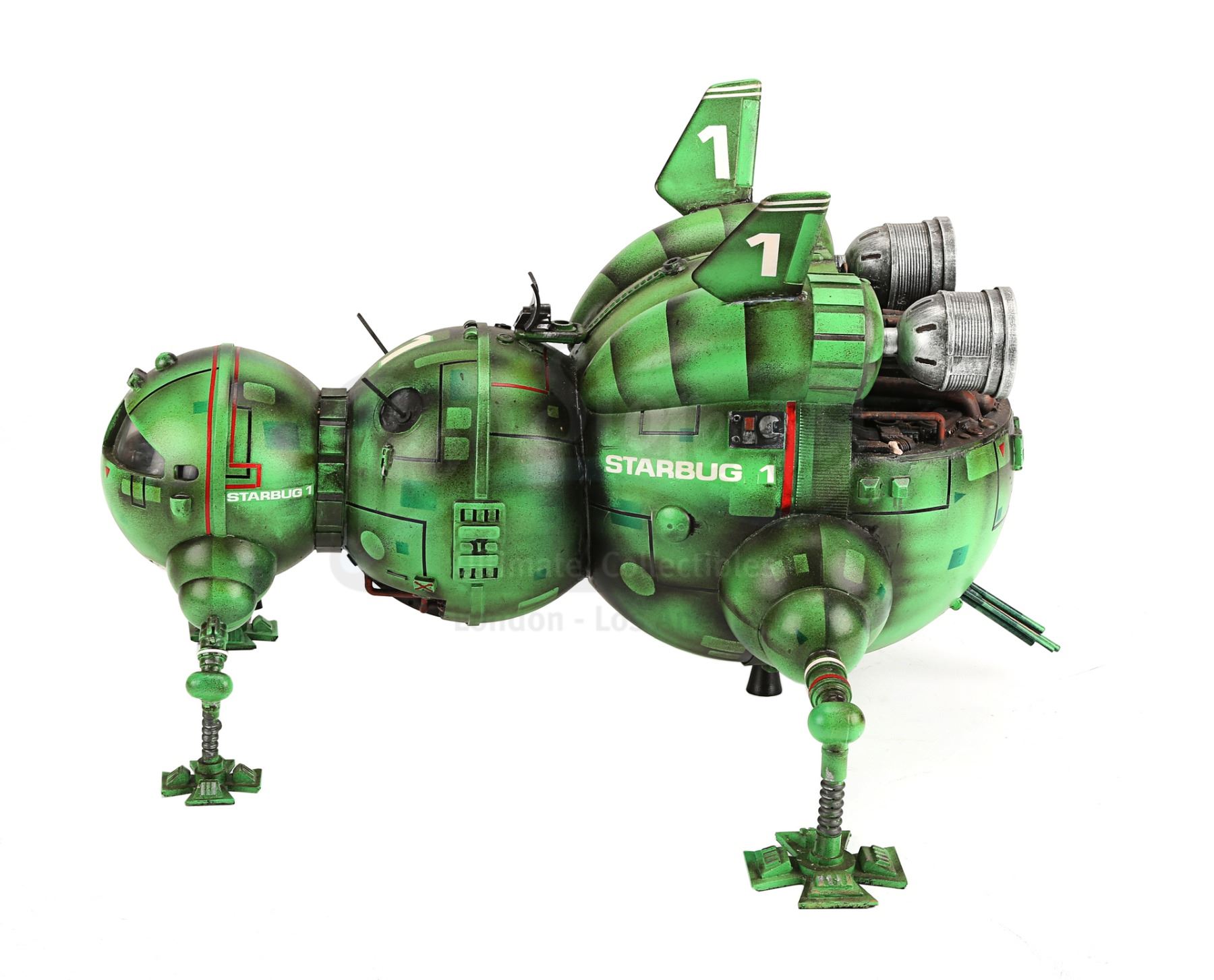 A model miniature of Starbug 1 from the sci-fi comedy television show Red Dwarf. The notoriously unreliable Starbug shuttles first appeared in Series III and were the crew's primary mode of transportation to different planets, although they were often crashed by the crew.