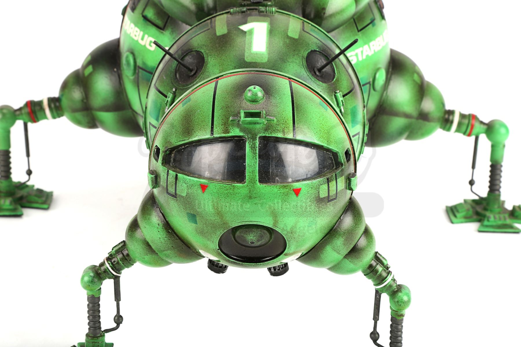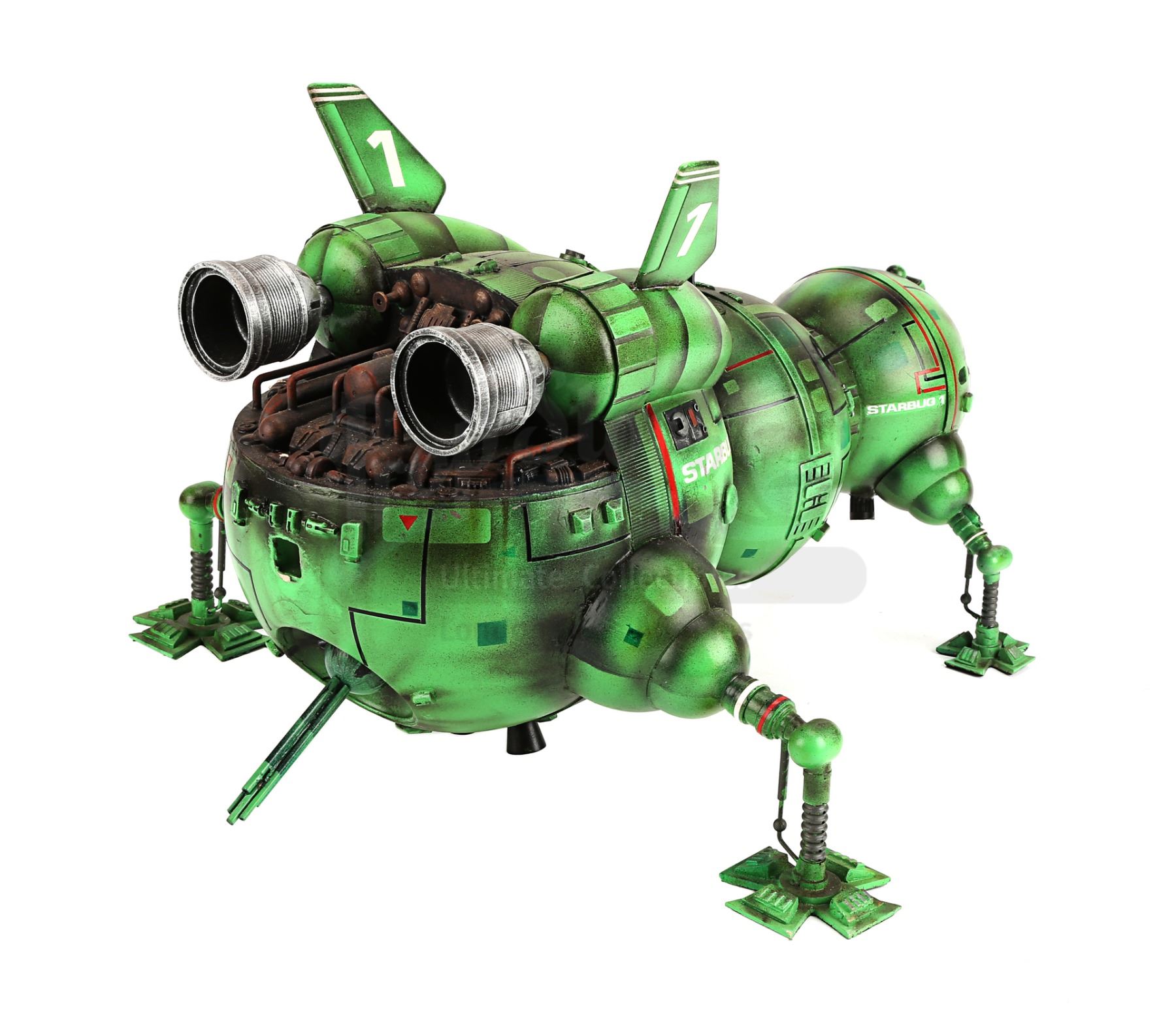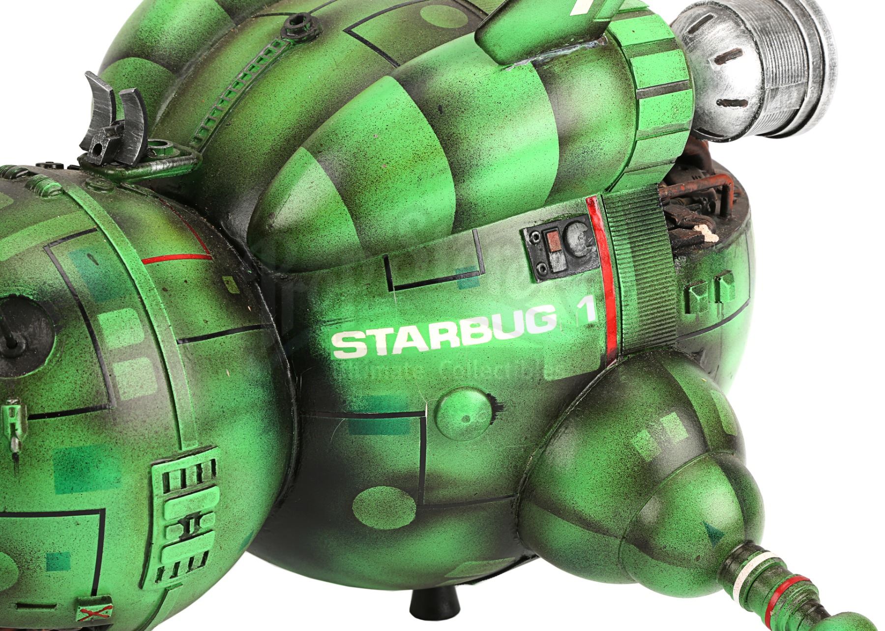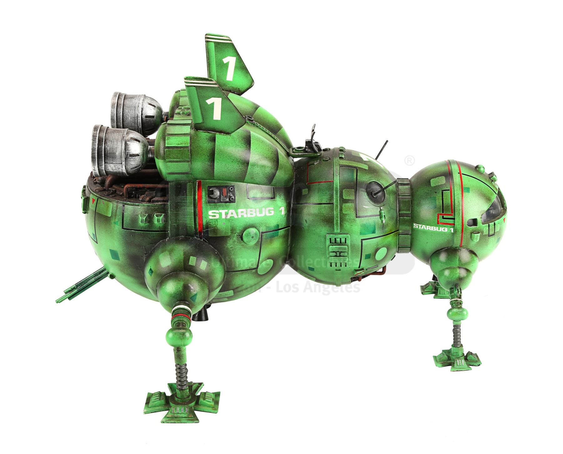 A model miniature of Starbug 1 from the sci-fi comedy television show Red Dwarf. The notoriously unreliable Starbug shuttles first appeared in Series III and were the crew's primary mode of transportation to different planets, although they were often crashed by the crew.