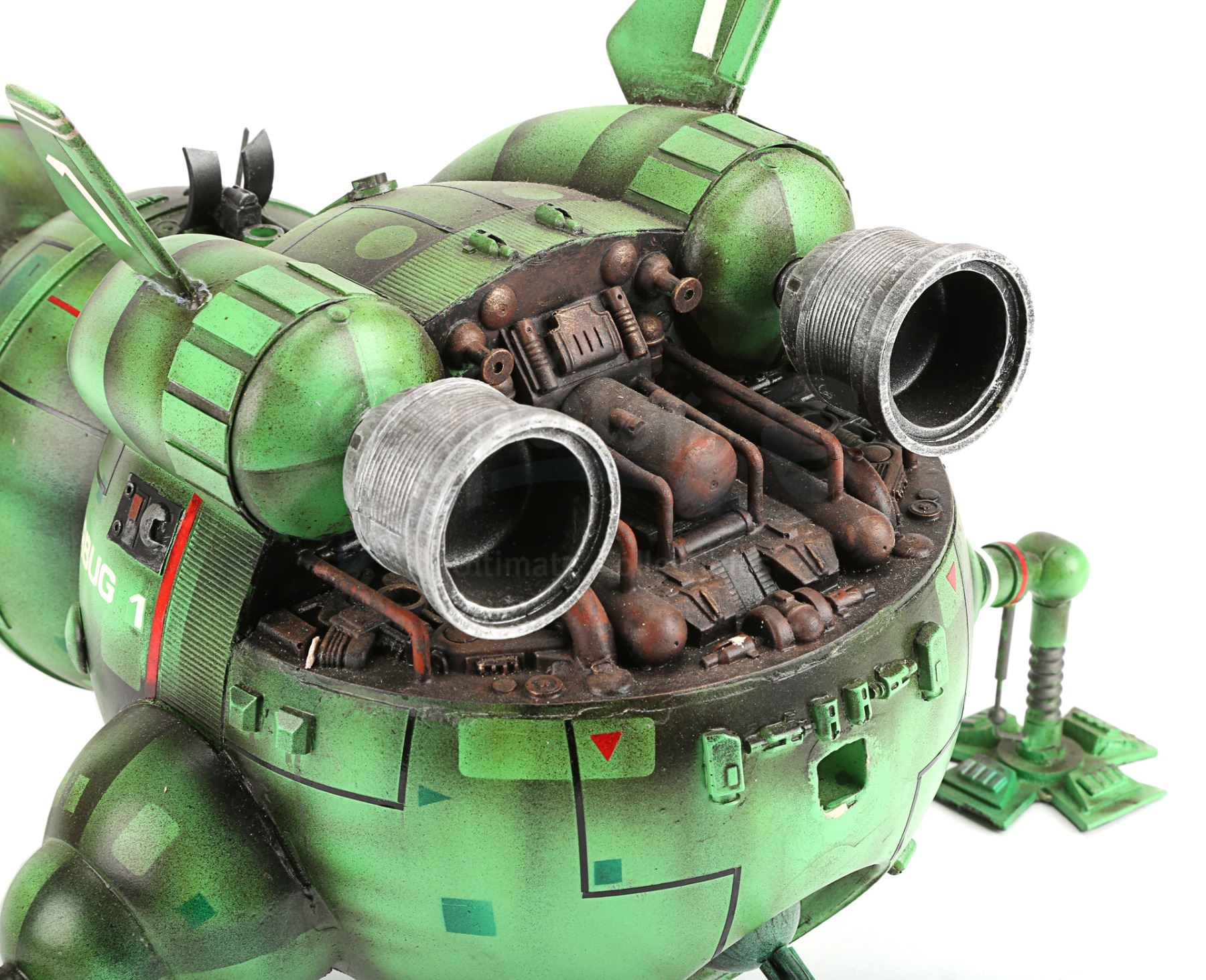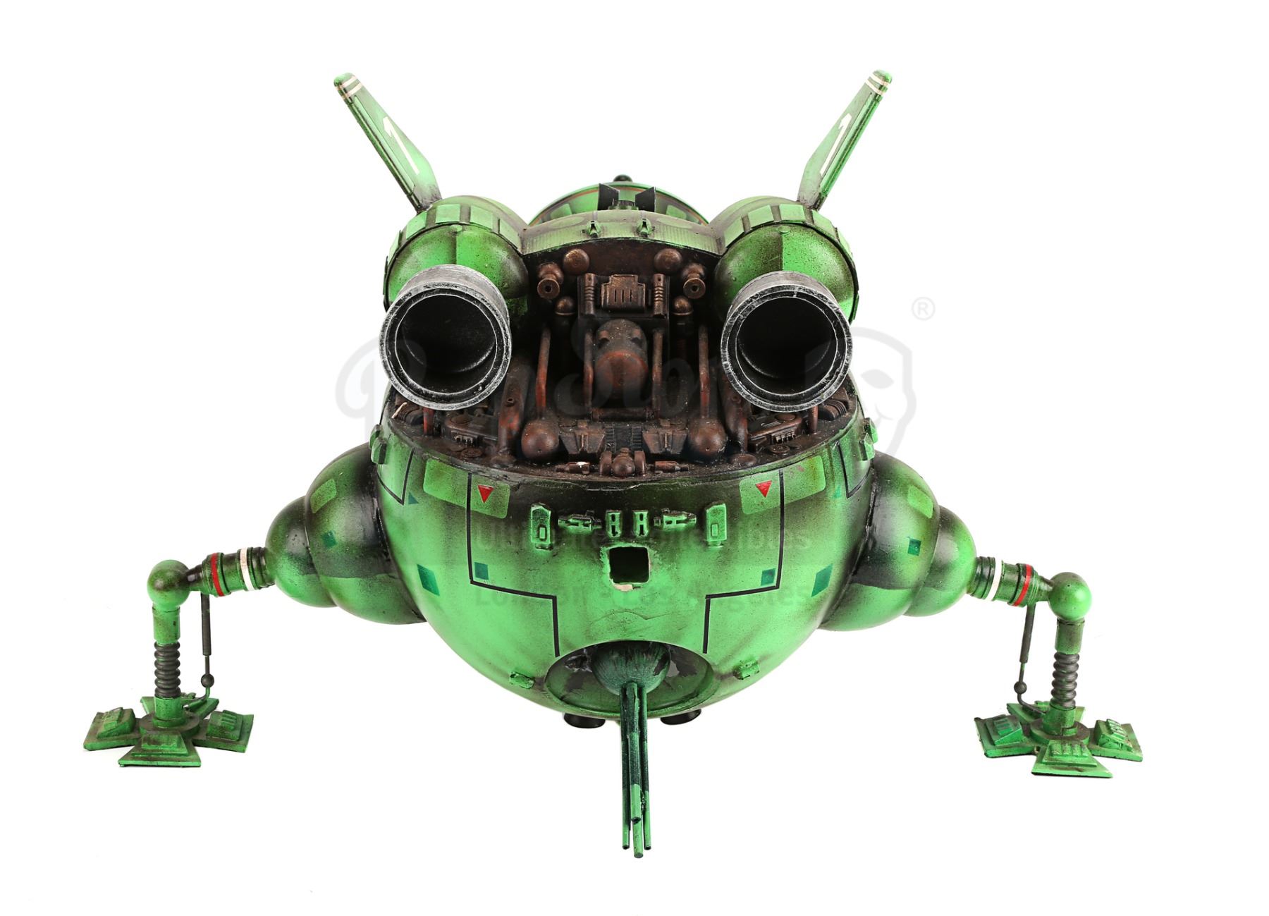 The model miniature is made of resin and features a hand-painted green finish, with additional detailing and intentional distress applied to make the craft look well used.