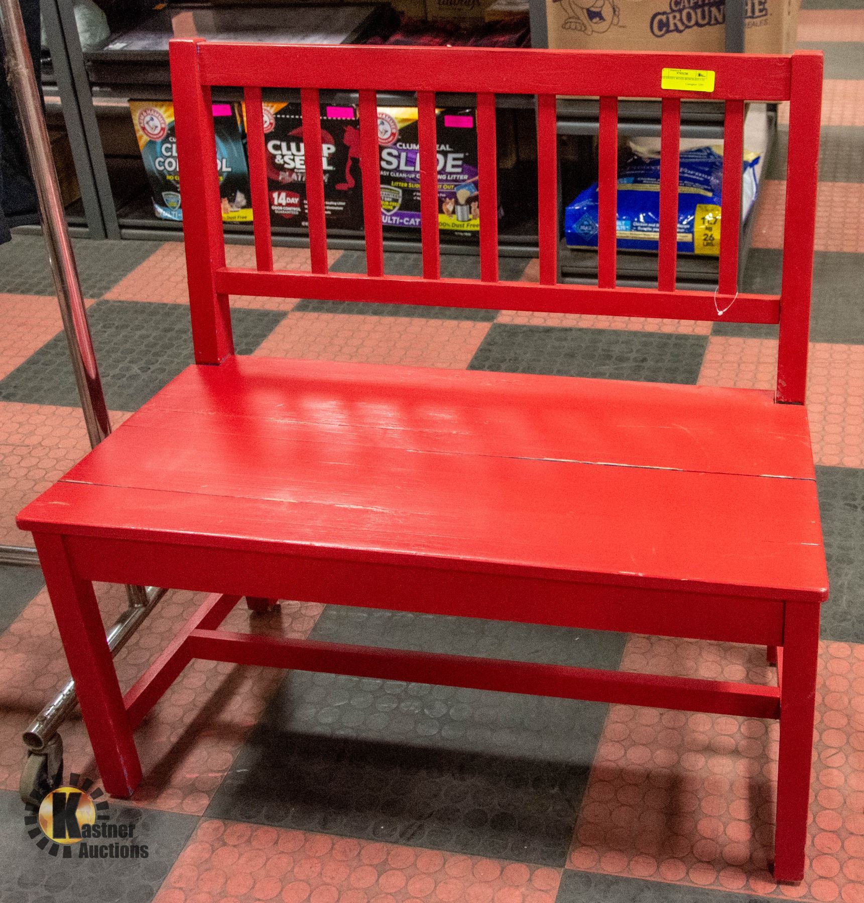 RED ENTRYWAY WOODEN BENCH-ESTATE