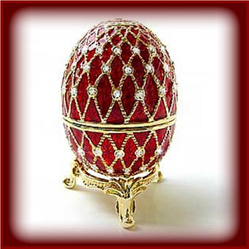RED FABERGE EGG RING BOX GOLD SWAROVSKI CRYSTALS