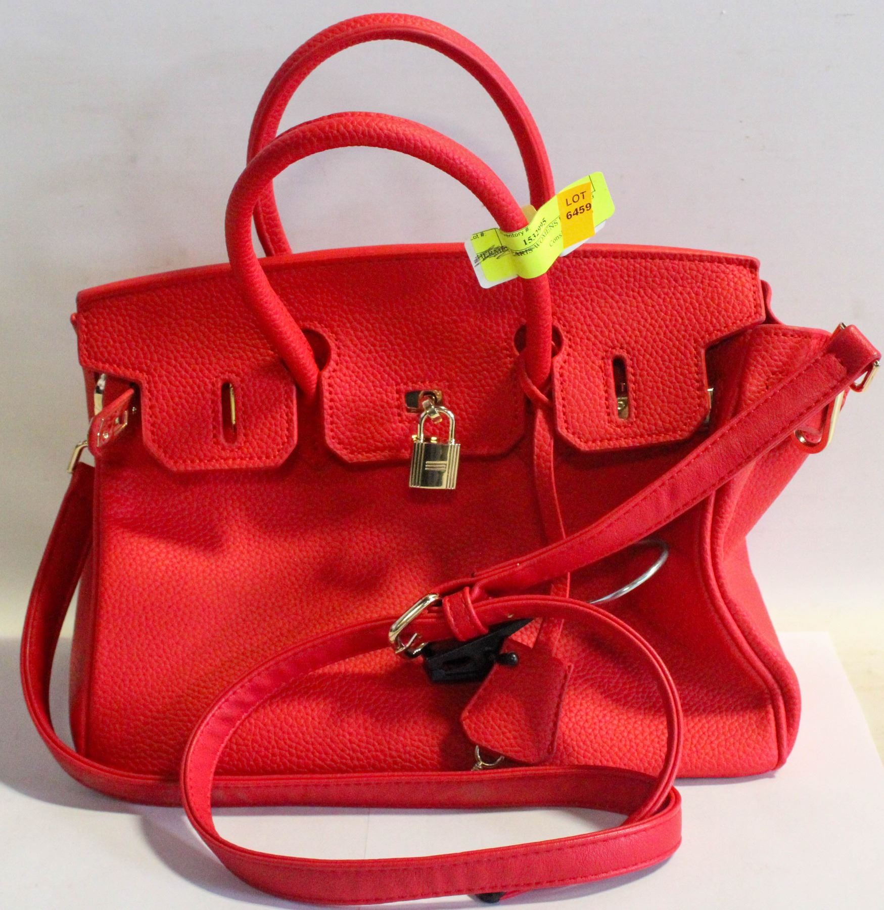 RED FAUX LEATHER REPLICA HANDBAG WITH LONG STRAP