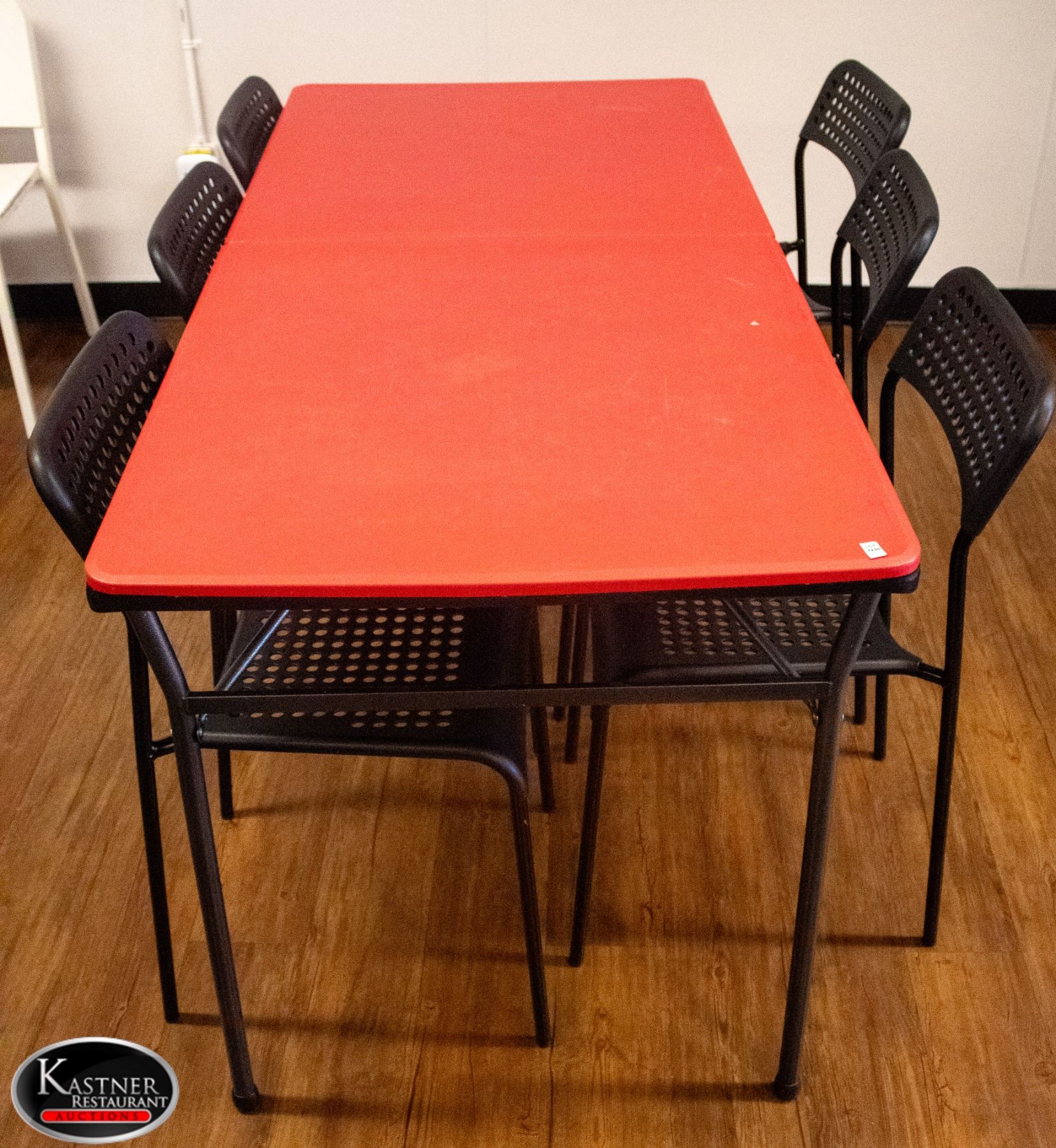 RED FOLDING TABLE W/ 6 CHAIRS