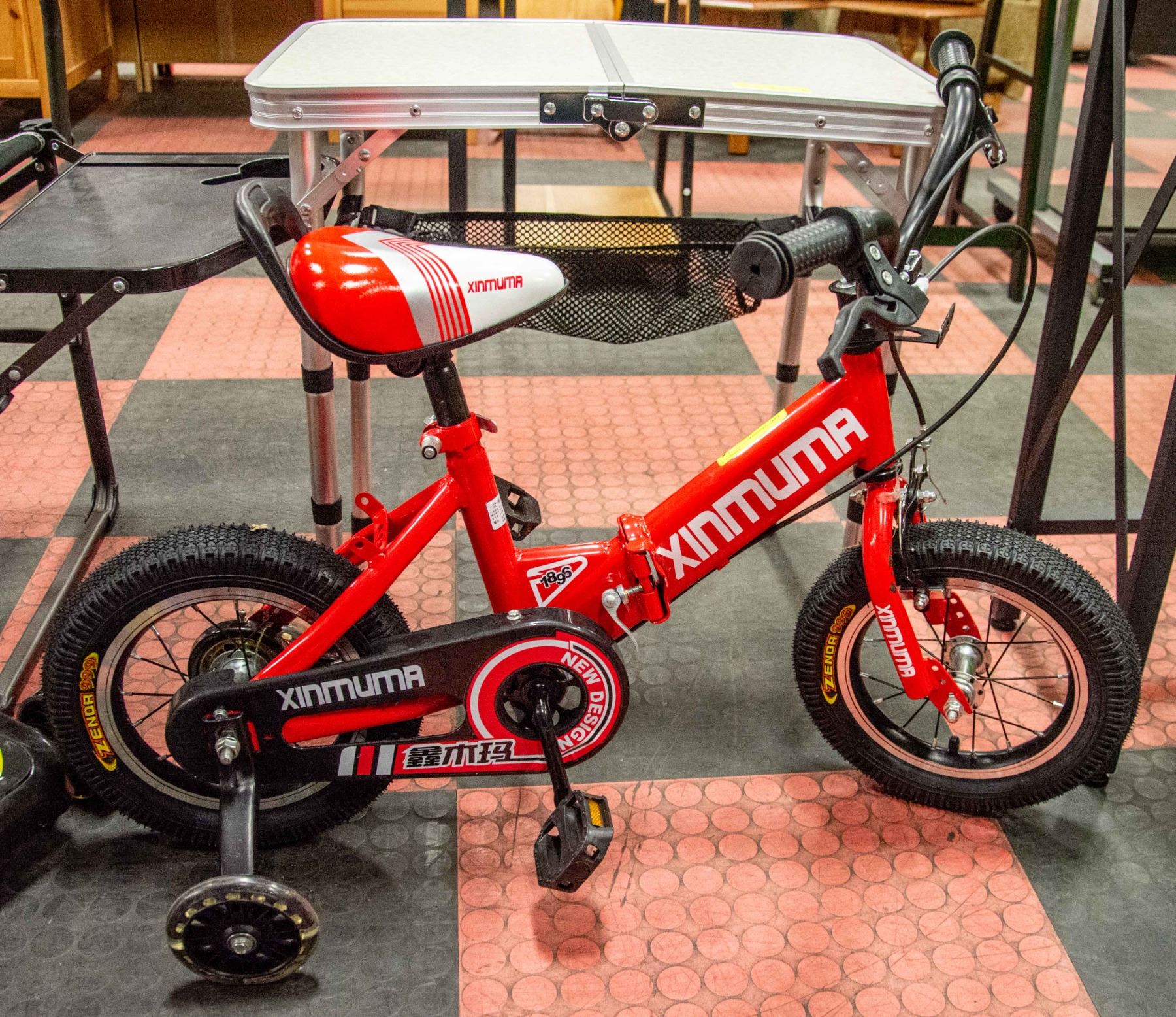 RED FOLDING XINMUMA KIDS BIKE WITH TRAINING WHEELS AMZ SES