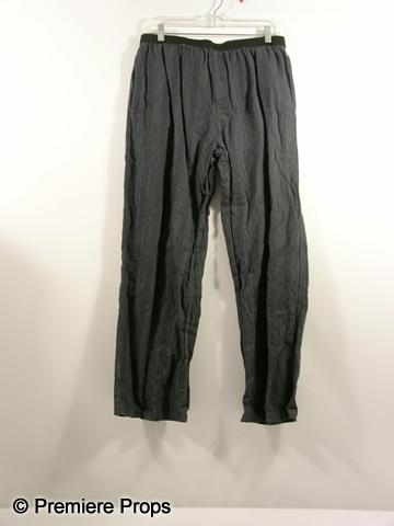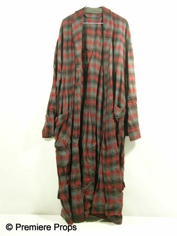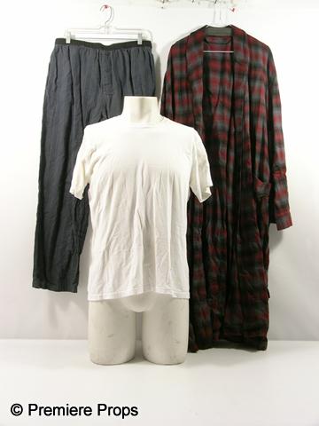 Red (2010) - Frank (Bruce Willis) screen worn, hero, white crew neck short sleeve 'Calvin Klein t-shirt, (size M) burgundy, grey, and black plaid flannel robe, (size S/M) and dark grey pinstriped 'Calvin Klein' pj bottoms. (size L)