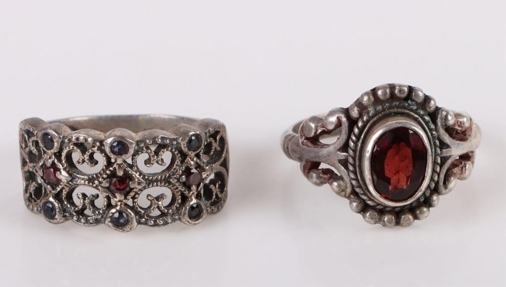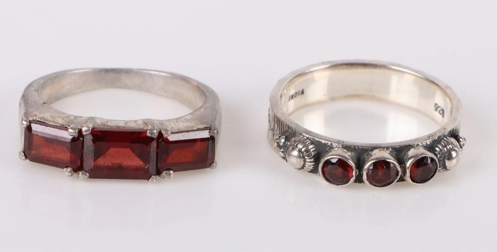 Red garnet sterling silver ladies rings. Lot of 4. With 3.05CTW total garnets.