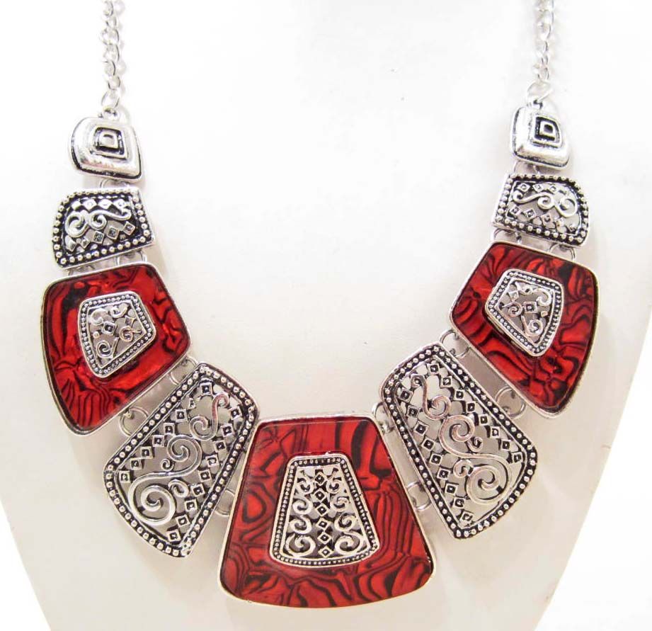 RED GEOMETRICAL FAN ESTATE JEWELRY NECKLACE