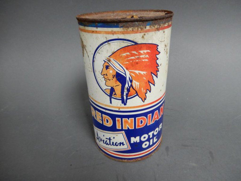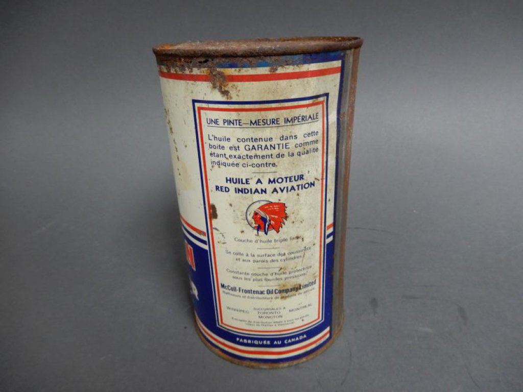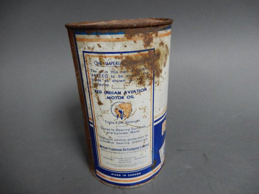 RED INDIAN AVIATION MOTOR OIL IMP. QT. CAN BILINGUAL- SURFACE RUST LOCATION: LOWER RIGHT