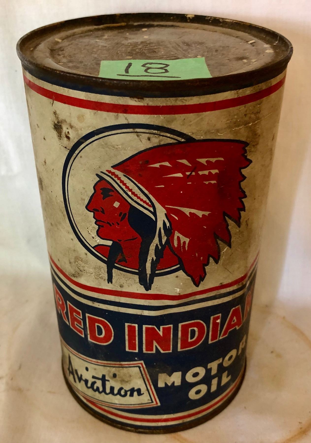 RED INDIAN AVIATION MOTOR OIL TIN - 1 QT SIZE