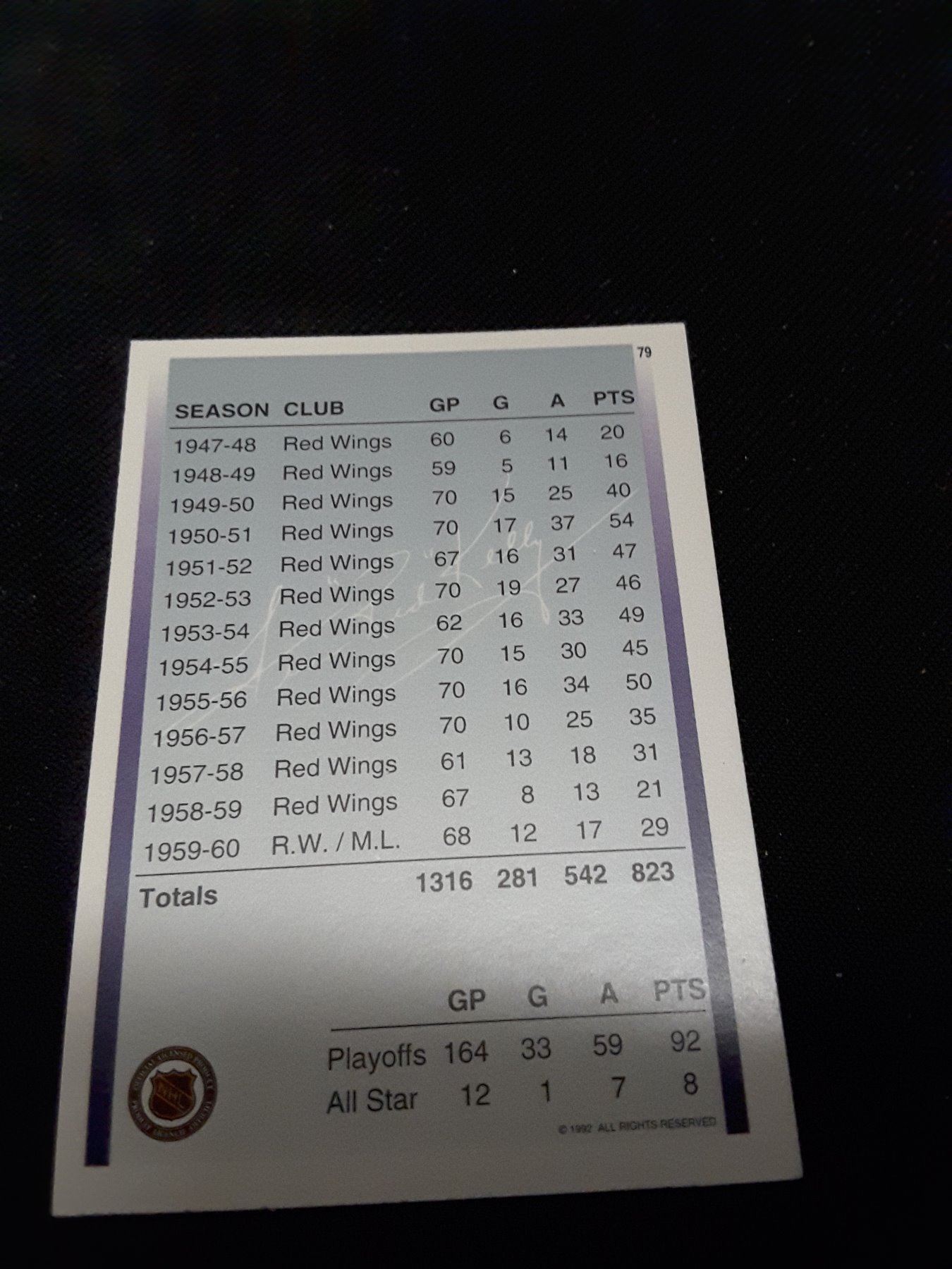 RED KELLY SIGNED HOCKEY CARD