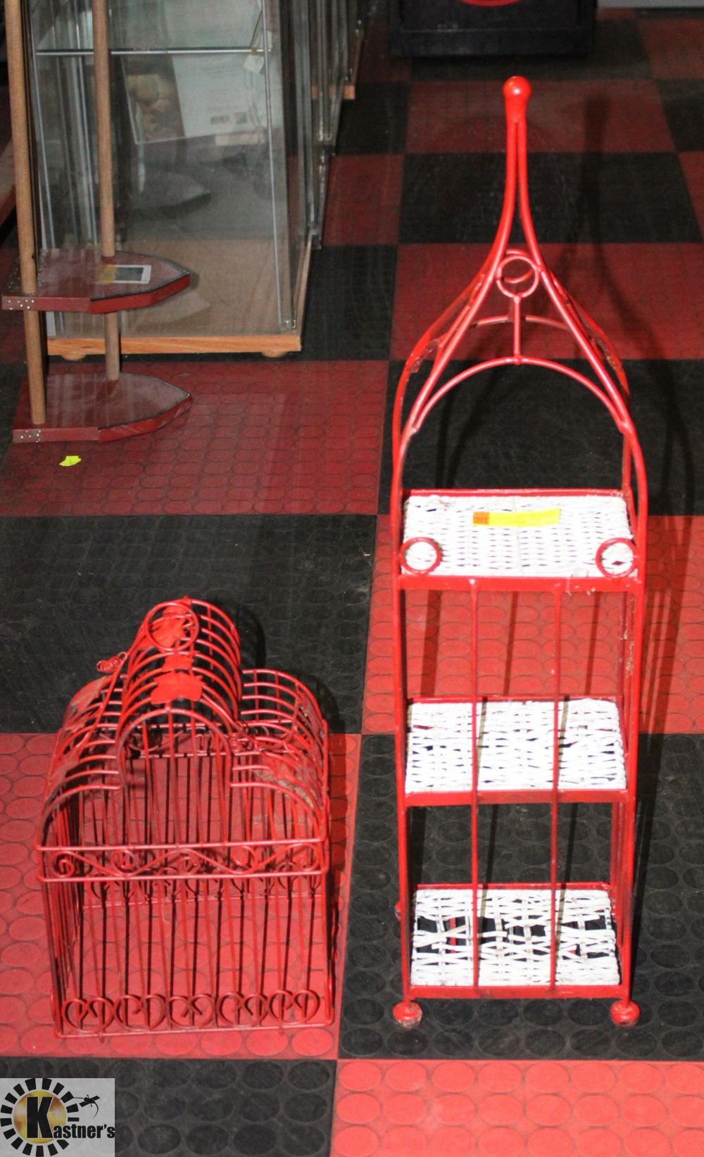 RED METAL 3 TIER STAND & BIRD CAGE TOGETHER