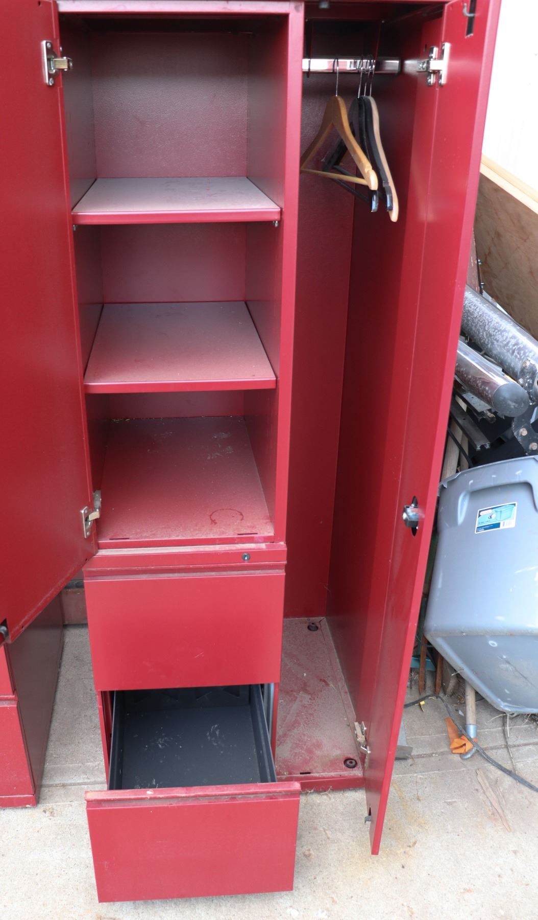 NO KEYS. GOOD CONDITION. STORED OUTSIDE. APPROX 5'6" TALL X 2' X 2'