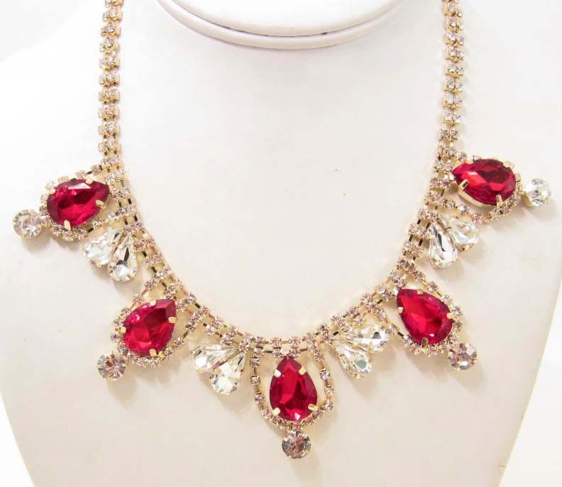 RED RHINESTONE WATER DROPLETS ESTATE JEWELRY NECKLACE