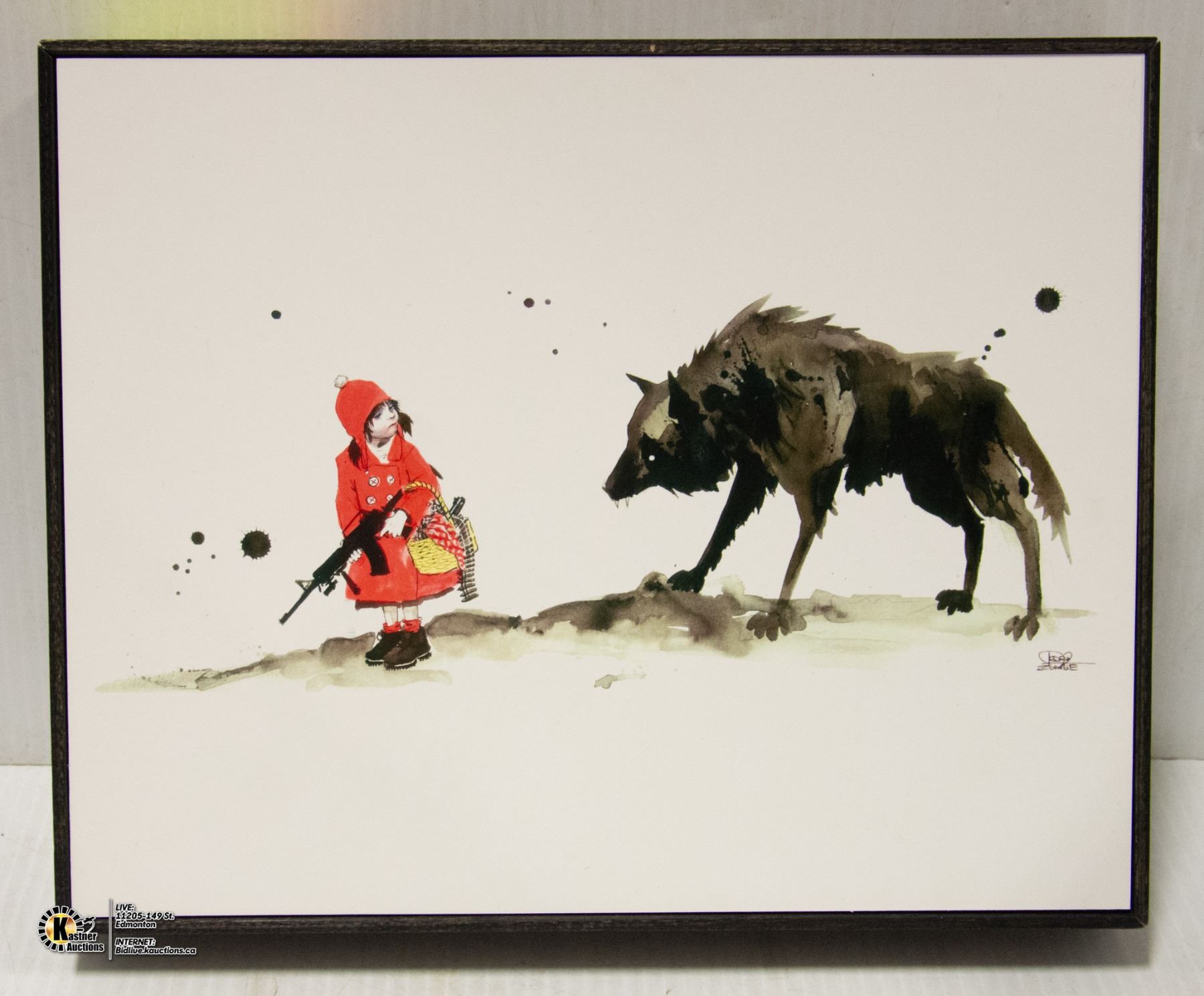 8.5 X 11 WOOD FRAMED RED RIDING PRINT BY ZOMBIE, LORA