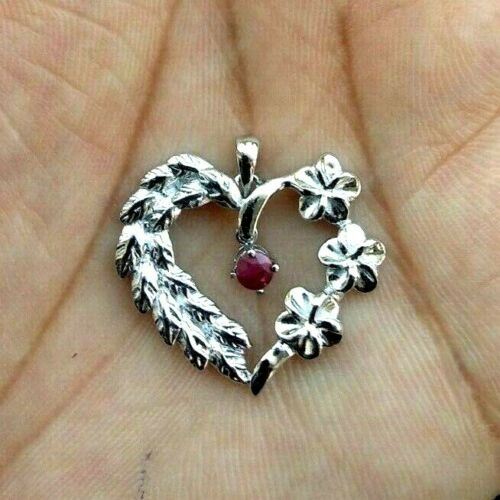 RED RUBY GEMSTONE 92.5 STERLING SILVER HEART HANDMADE PENDANT , GEMSTONE - RUBY , STONE SHAPE - ROUND , STONE SIZE - 4x4 mm , STONE WEIGHT - 0.50 CTS , METAL - STERLING SILVER , METAL PURITY - 92.5 , METAL WEIGHT - 3.64 GRAMS , PENDANT LENGTH - 1.2 INCHES , QUANTITY - 1 PIECE PENDANT , PENDANT WEIGHT : 3.74 GRAMS