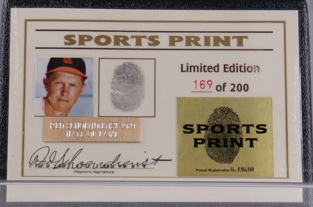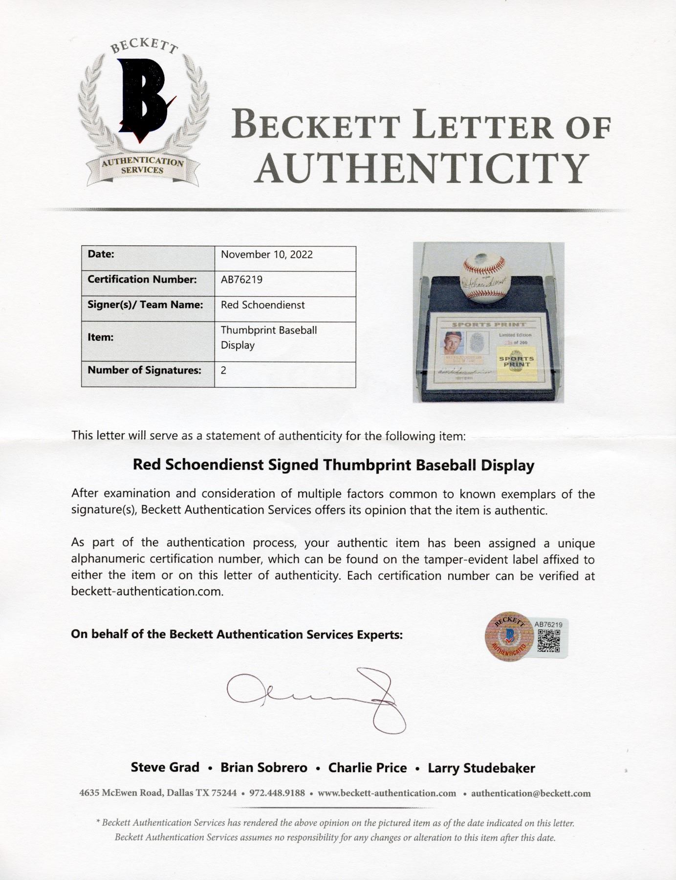 RED SCHOENDIENST SIGNED THUMBPRINT BASEBALL DISPLAY - BECKETT COA