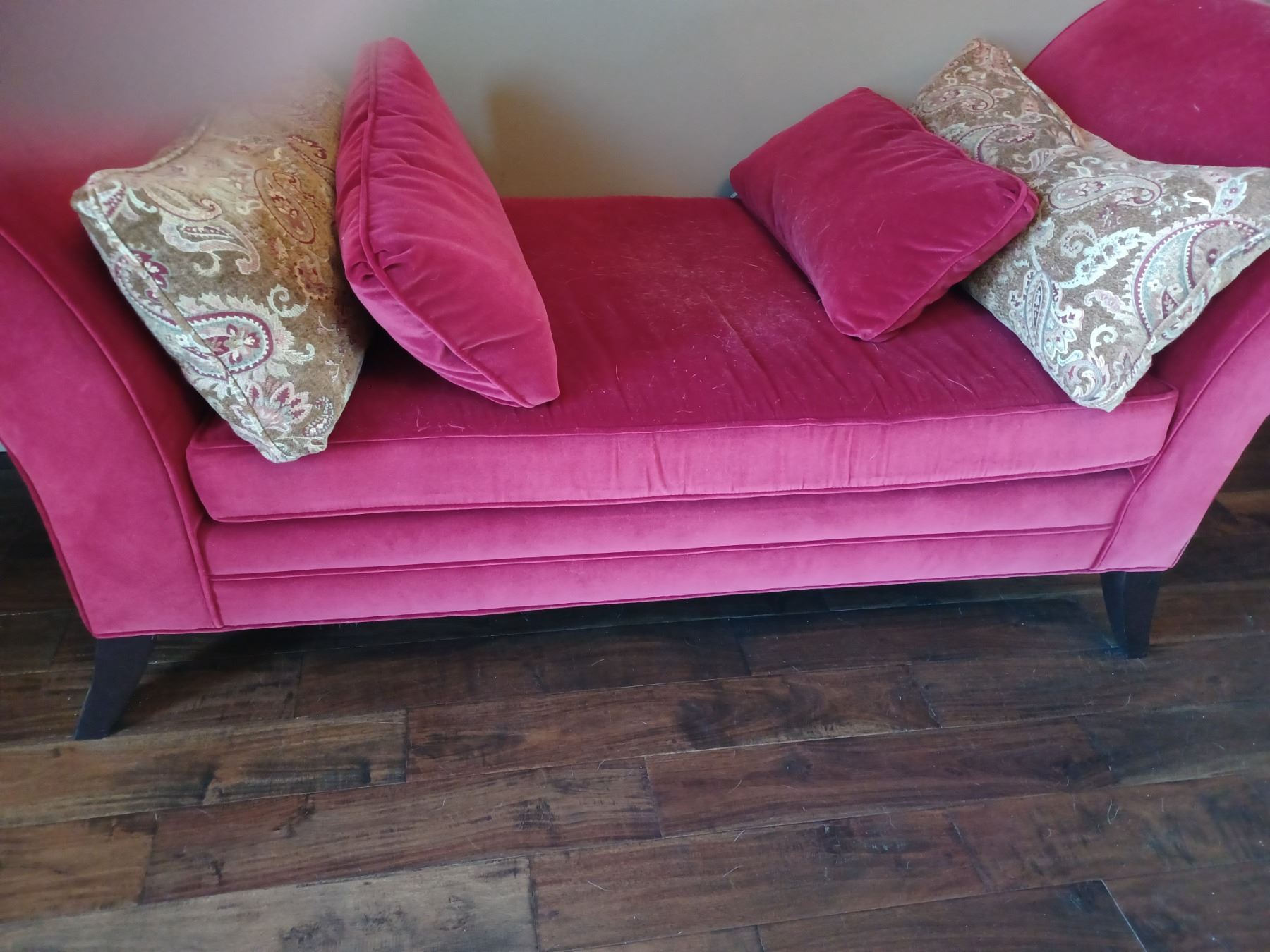 RED SEATEE 75" X 27" VOGEL CHAISE COMES WITH ARMS ON BOTH SIZE