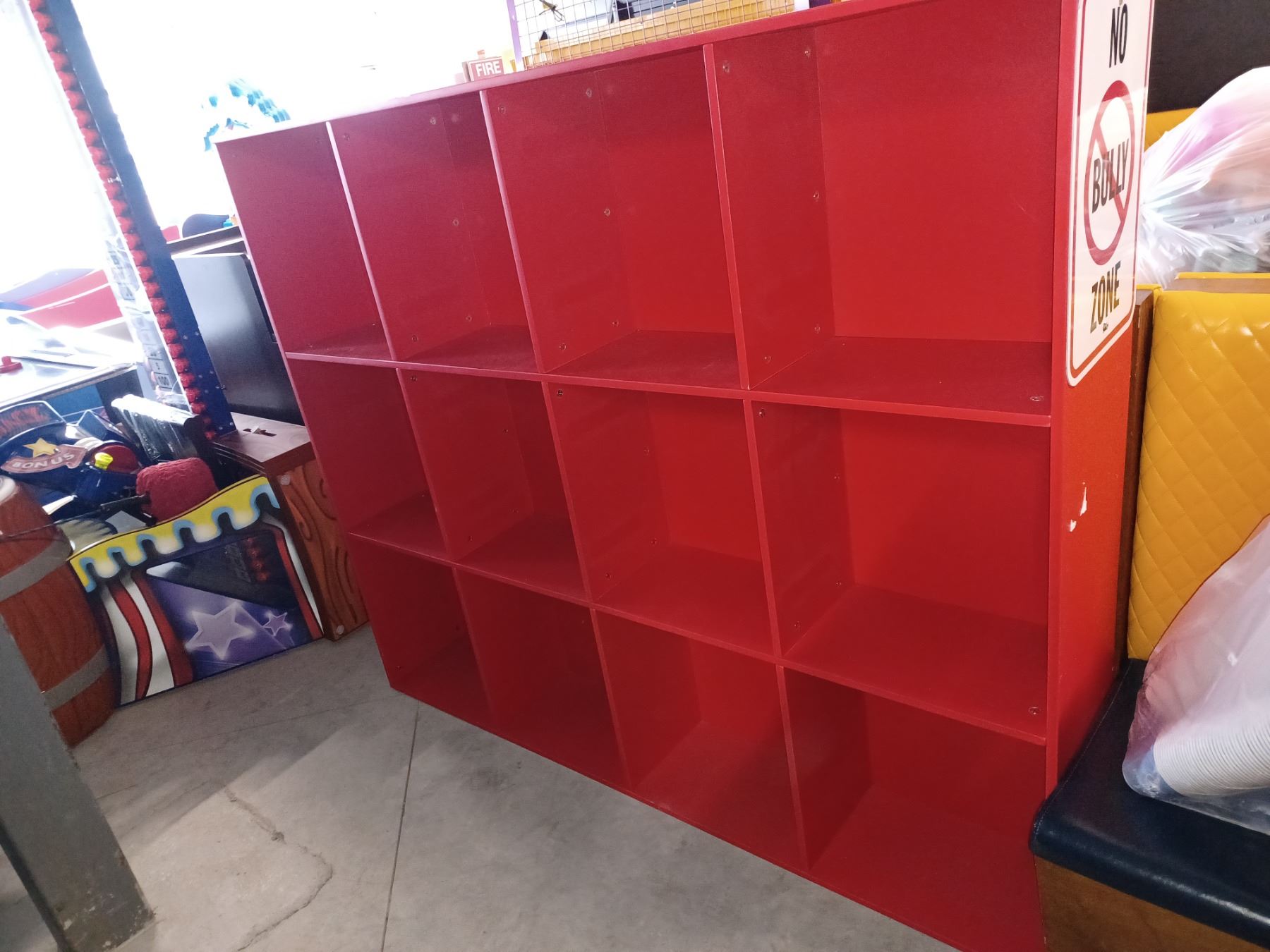 RED SHELVING UNIT: 12"D x 72"L x 60"H